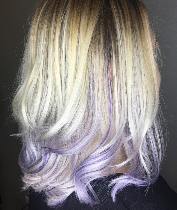 «С появлением ласковых систем окрашивания, которые жгут исключительно метафорически, пряди ярких цветов могут себе позволить не только беспечные подростки. Я, например, позволила — и три месяца носила всполохи пурпурного на темно-каштановом. Согласно законам колористики, на темных волосах с холодным подтоном как родные смотрятся фиолетовый, синий и зеленый включения, с теплым — фуксия, пурпурный и алый. Со временем тонирование вымывалось, и изначальный фиолетовый оттенок постепенно линял (почти не теряя достоинства) в лавандовый, сиреневый и бледно-розовый».