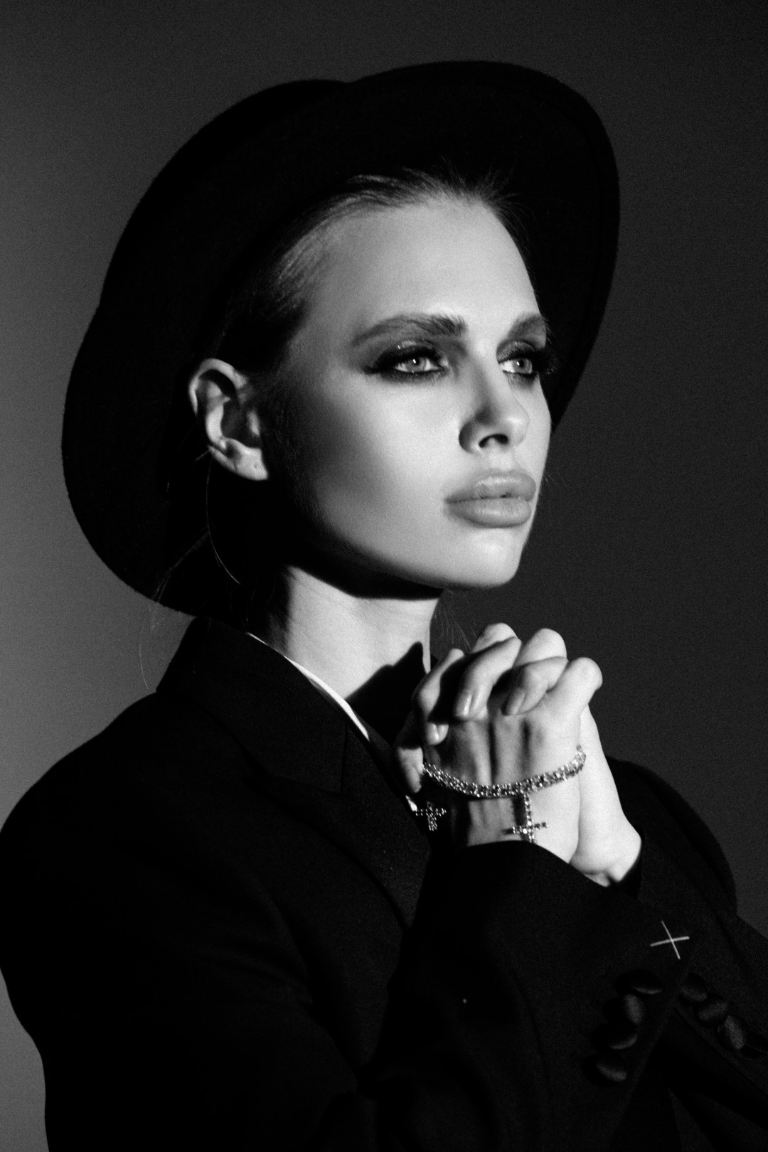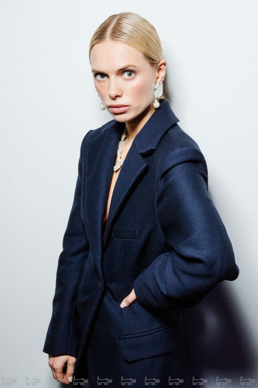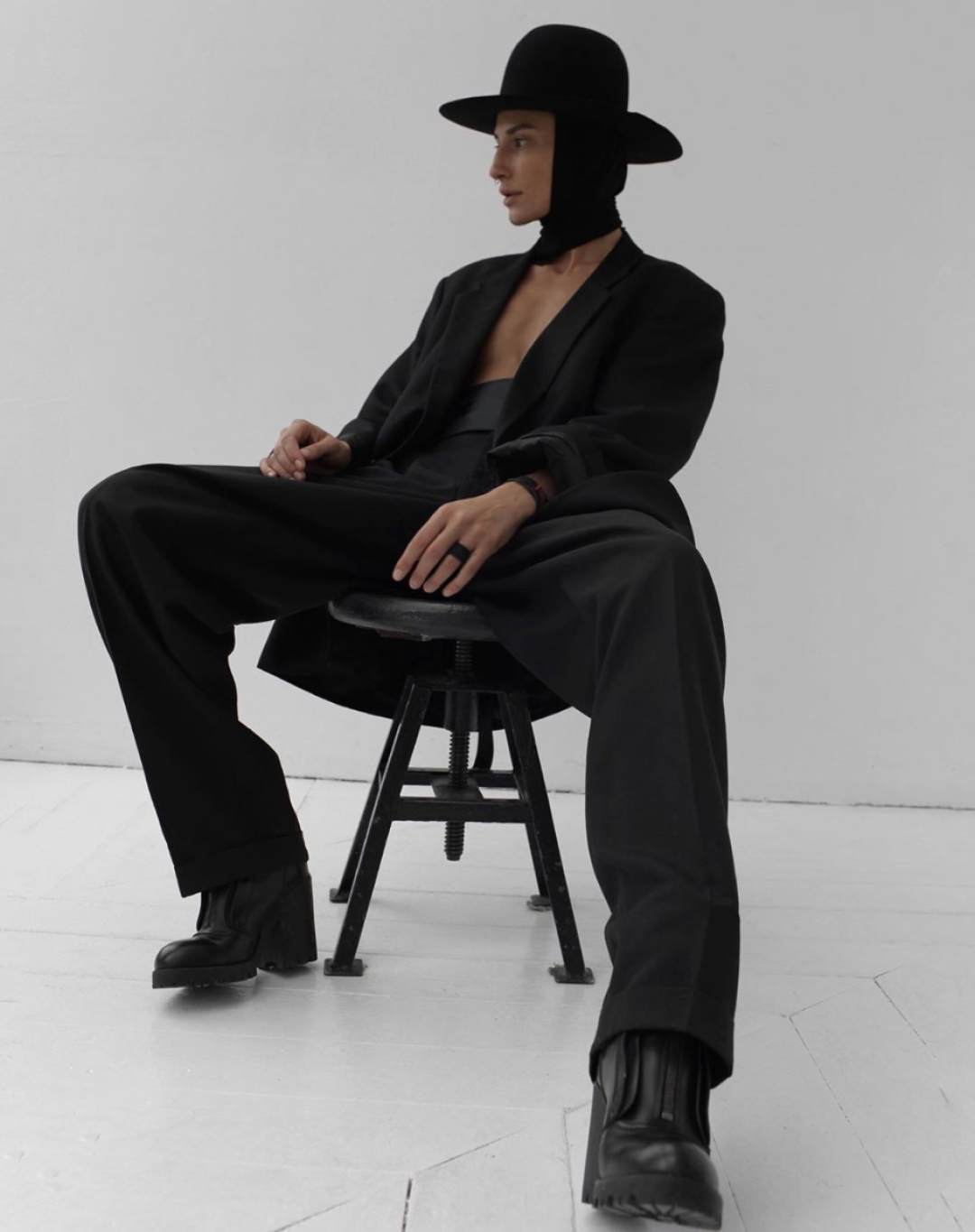 «В моем стиле все очень лаконично и отсутствуют какие-либо цвета. Меня привлекает стилистика мужского костюма — строгость, элегантность, закрытая сексуальность, обволакивающие, многослойные и оверсайзовые силуэты. Акценты расставляю при помощи колец, сережек, подтяжек или запонок».
