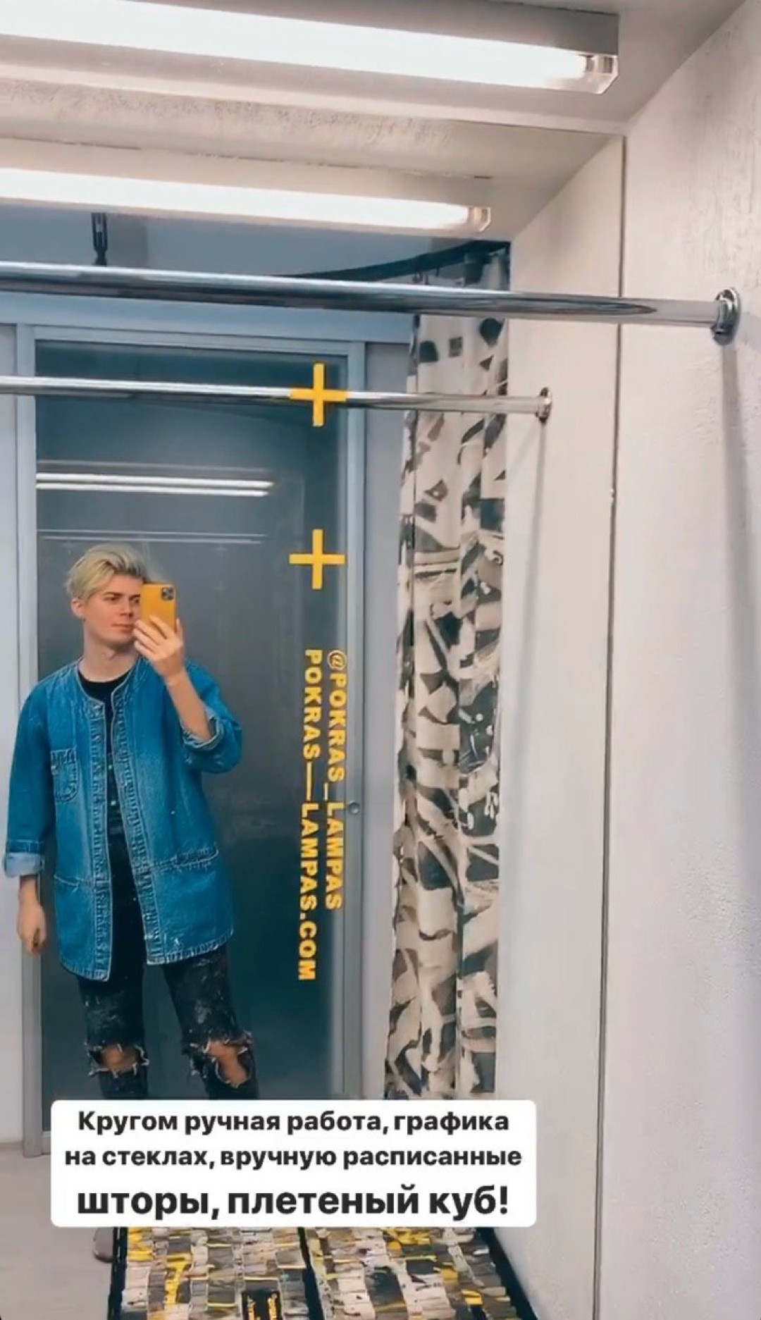 Онлайн-экскурсию по магазину каллиграф провел лично, рассказав, что шторы для примерочной зоны и все стекла они расписывали в ручную. Покрас Лампас также добавил, что планирует открыть тату-студию, но подробности не уточнил. Сейчас все вещи из шоурума можно заказать на сайте Pokras.shop с бесплатной доставкой по всему миру.
