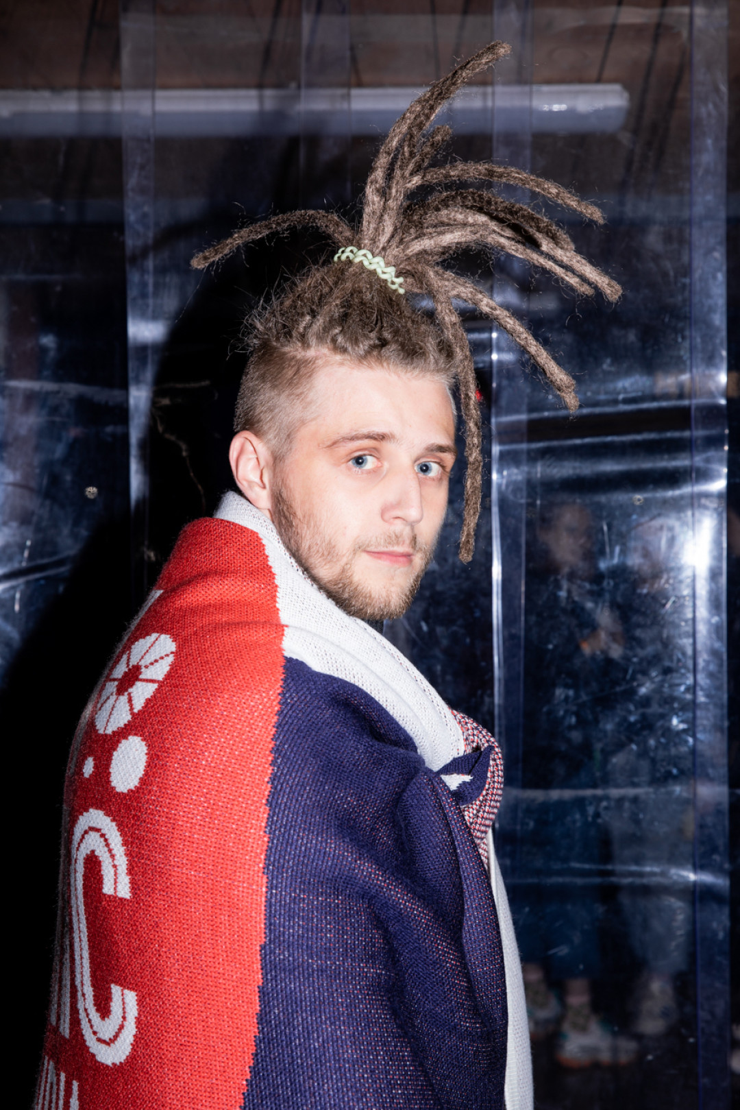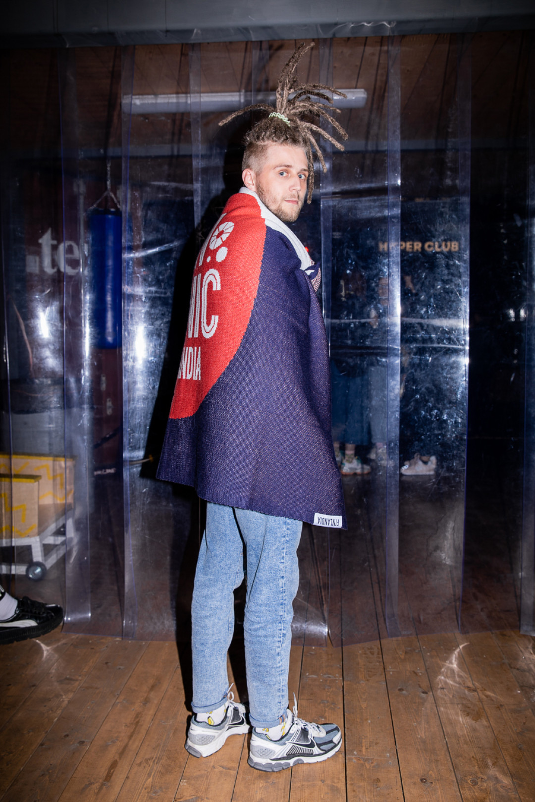 Ростислав. На Ростиславе: кроссовки Adidas, брюки Tom Ford, куртка H&M STUDIO, худи мерч группы, ремень Dior, авоська KDW