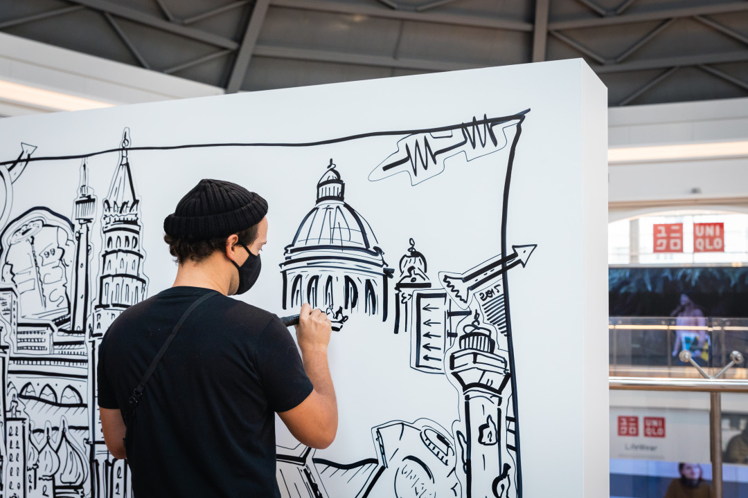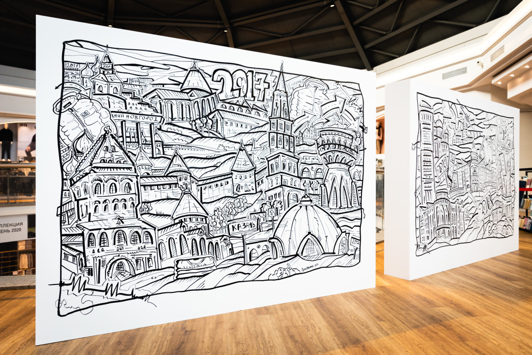 В раскрасках отражены важные события в развитии бренда в России, а также легендарные продукты UNIQLO. Всего две стены-раскраски: одна в «Атриуме» в Москве, другая в «Галерее». В Петербурге арт-объект откроется 23 октября.
