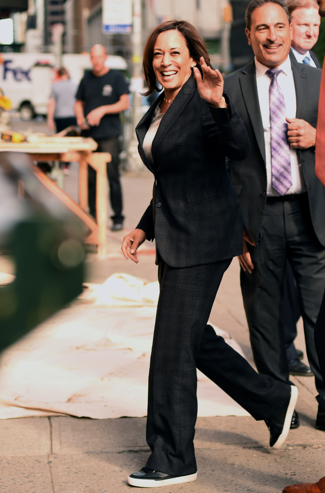 Как и полагает женщине-политику, Харрис исповедует грамотный и органичный power dressing. Главная вещь ее публичного образа — брючный костюм черного или темно-синего цвета. Чаще — с брюками-скинни, к которым Камала явно неравнодушна. Пиджаки она сочетает и с джинсами, и с футболками, и с рубашками, реже — с юбкой-карандаш, а цвета выбирает базовые: уже упомянутые темно-синий и черный, а также серый, белый. Чтобы понять, как должен выглядеть минималистичный стиль политика — посмотрите на Харрис. На торжественных событиях ее можно увидеть в однотонных платьях и, опять же, брючных костюмах, что доказывает ее образ на произнесении речи Джо Байдена в честь победы на выборах и образ, в котором она снялась для американского ELLE.