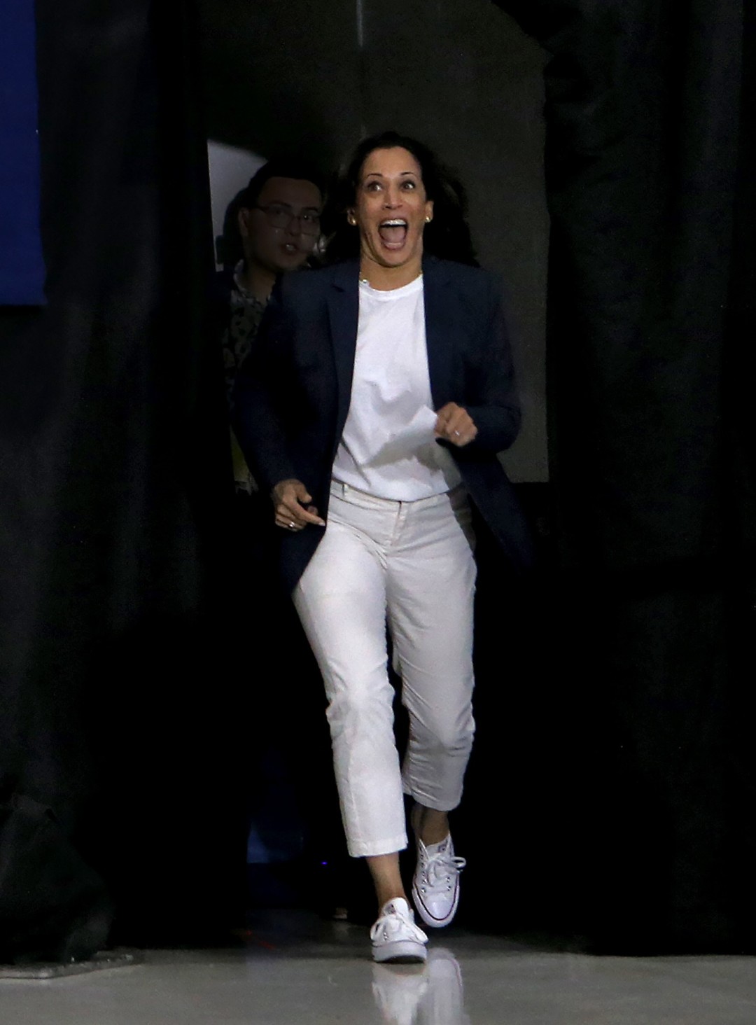 В кедах Камалу Харрис можно увидеть едва ли не чаще, чем в лодочках. Она надевает конверсы на публичные выступления, предвыборные митинги, носит их в поездках и в обычной жизни. У политика целая коллекция обуви американского бренда. Сникерхэдом мы Камалу не назовем, но вот преданной поклонницей Converse и фэшн-патриотом — запросто. К слову, новый вице-президент США иногда заменяет пару Converse ботинками еще одной американской марки — Timberland. Кеды же Харрис носит со всем: и джинсами-скинни, и брючными костюмами.