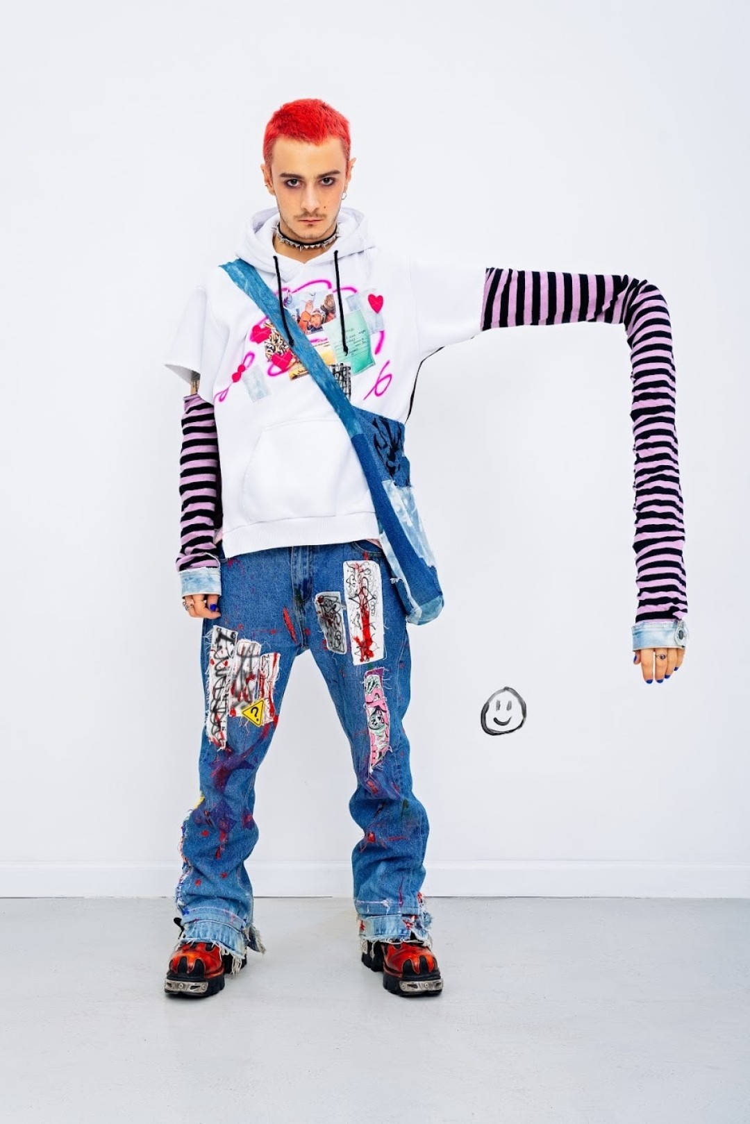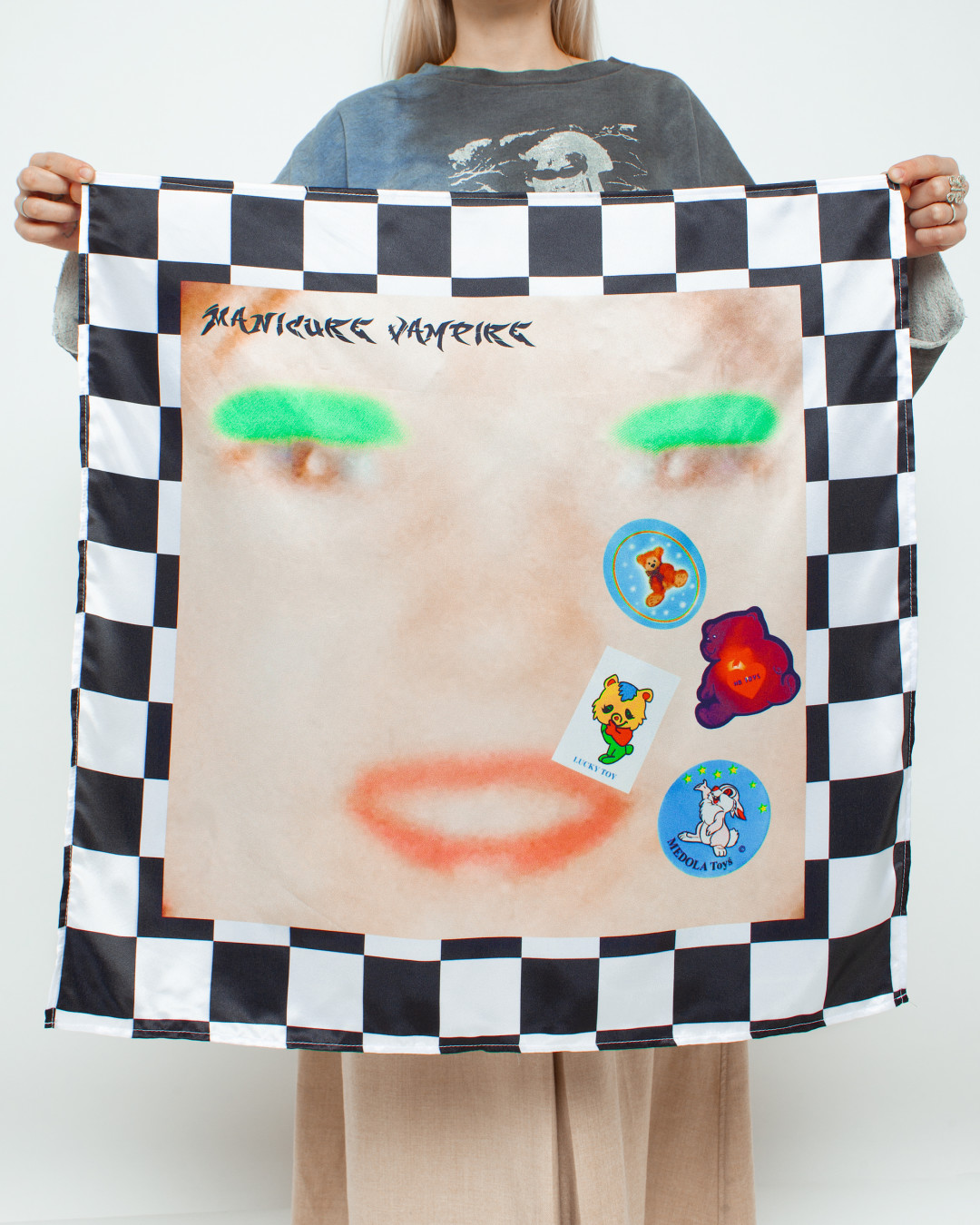 Дима: То есть эклектика в чистом виде, китч, переработка как поп-культуры, так и субкультурности, вдохновение улицами и детством. Так мы пришли к «Manicure Vampire», эти два слова, по нашему мнению, друг друга дополняют. После выбора названия запустили инстаграм — а тот момент у нас уже была небольшая коллекция вещей, которую мы отсняли.
