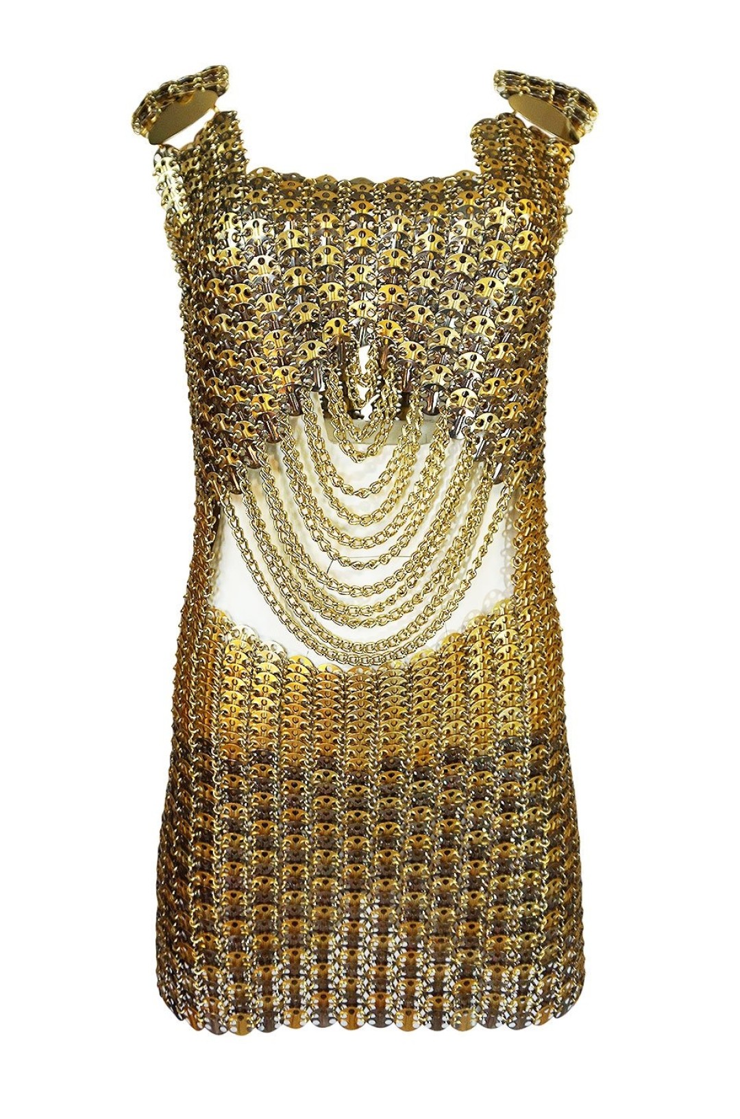 Среди брендов поменьше привлекает внимание Paco Rabanne, который к тому же переживает определенный ренессанс. Они показали на подиуме натуральную металлическую кольчугу. Очень к месту смотрятся и платья из скрепленных друг с другом металлических пластин — их бренд выпускает с момента основания. Тема защиты тела от вируса, одна из главных во время пандемии, удивительным образом рифмуется с защитной функцией доспехов и лат.