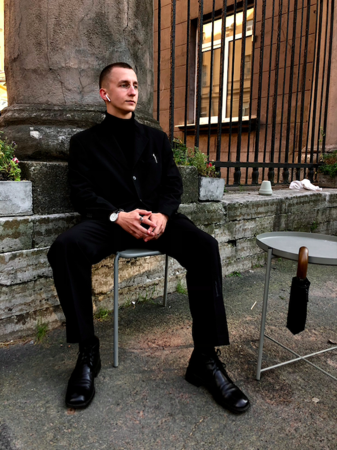 В одежде меня вдохновляет классика, в стихах — эмоциональная свобода. Переехал полтора месяца назад в Петербург и только сейчас голова начала очищаться от всего шлака, который происходил там (В Астрахани. — Прим. ред.).