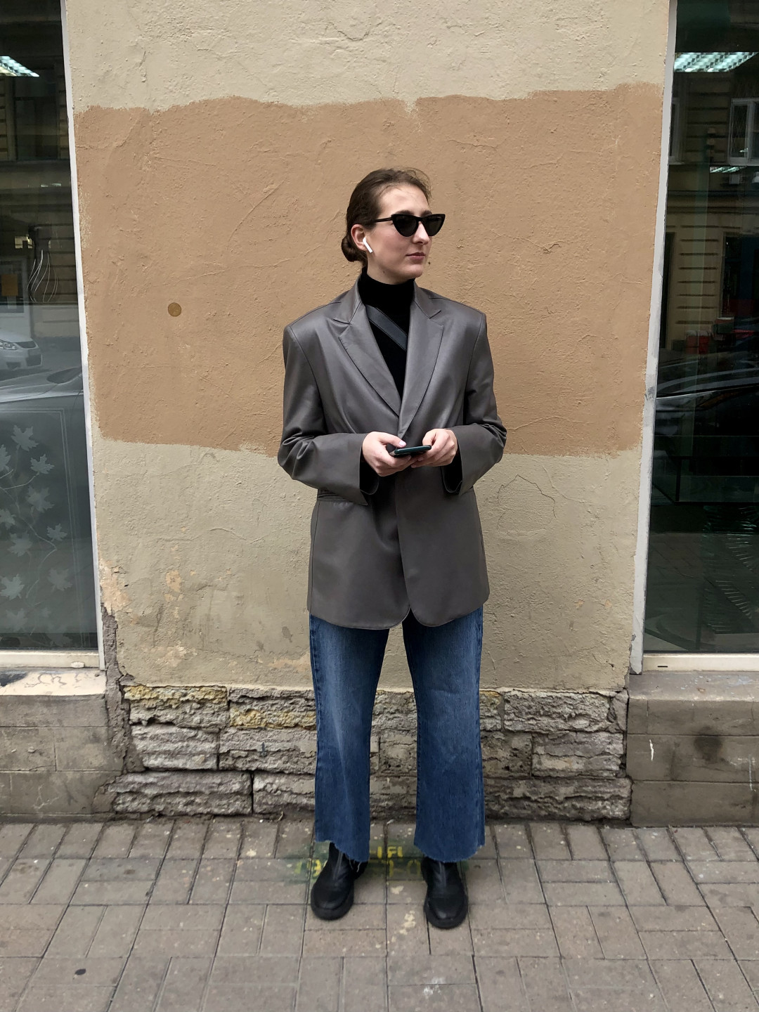 Пиджак Ushatava, бадлон Befree, джинсы Zara, сумка Moncler.