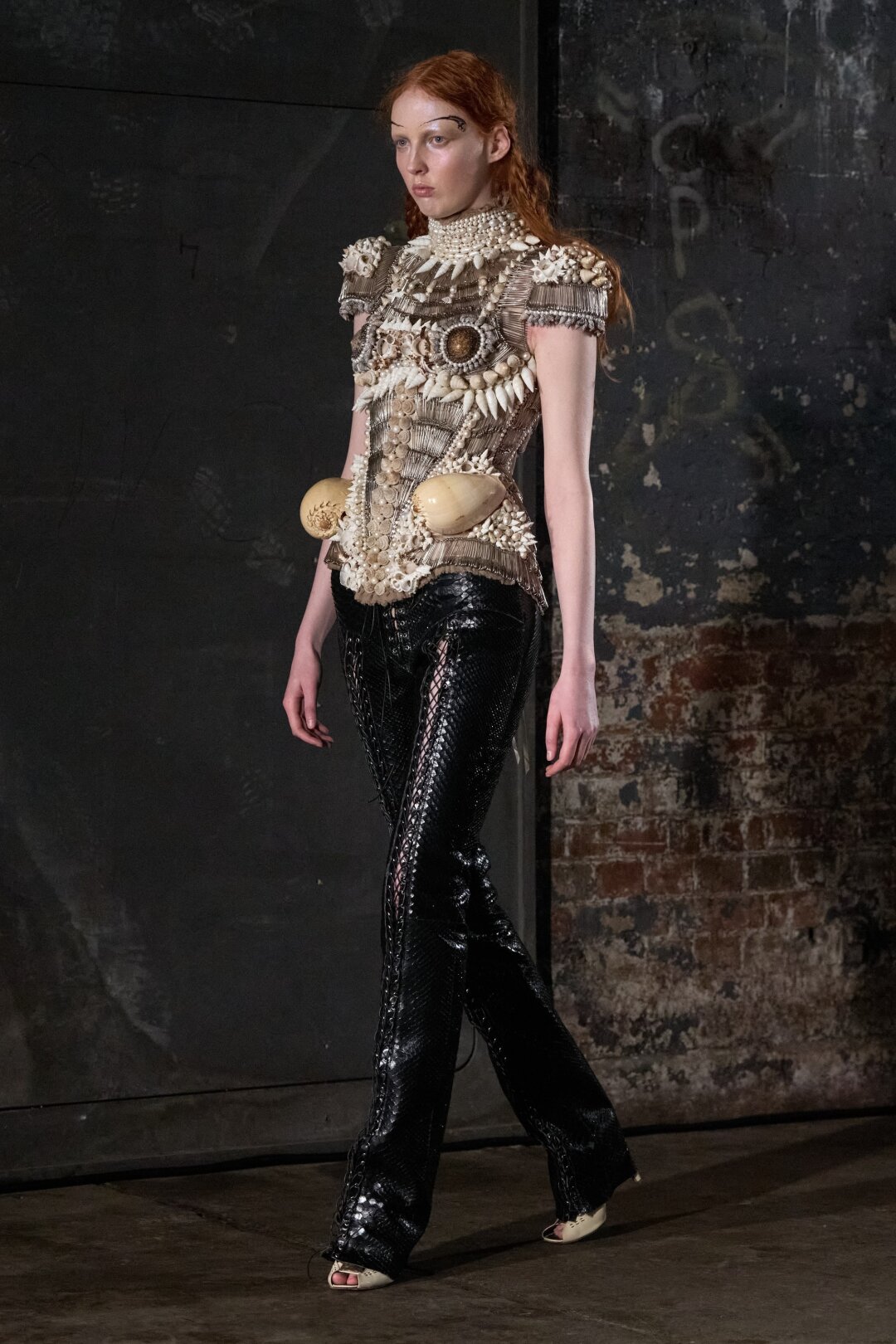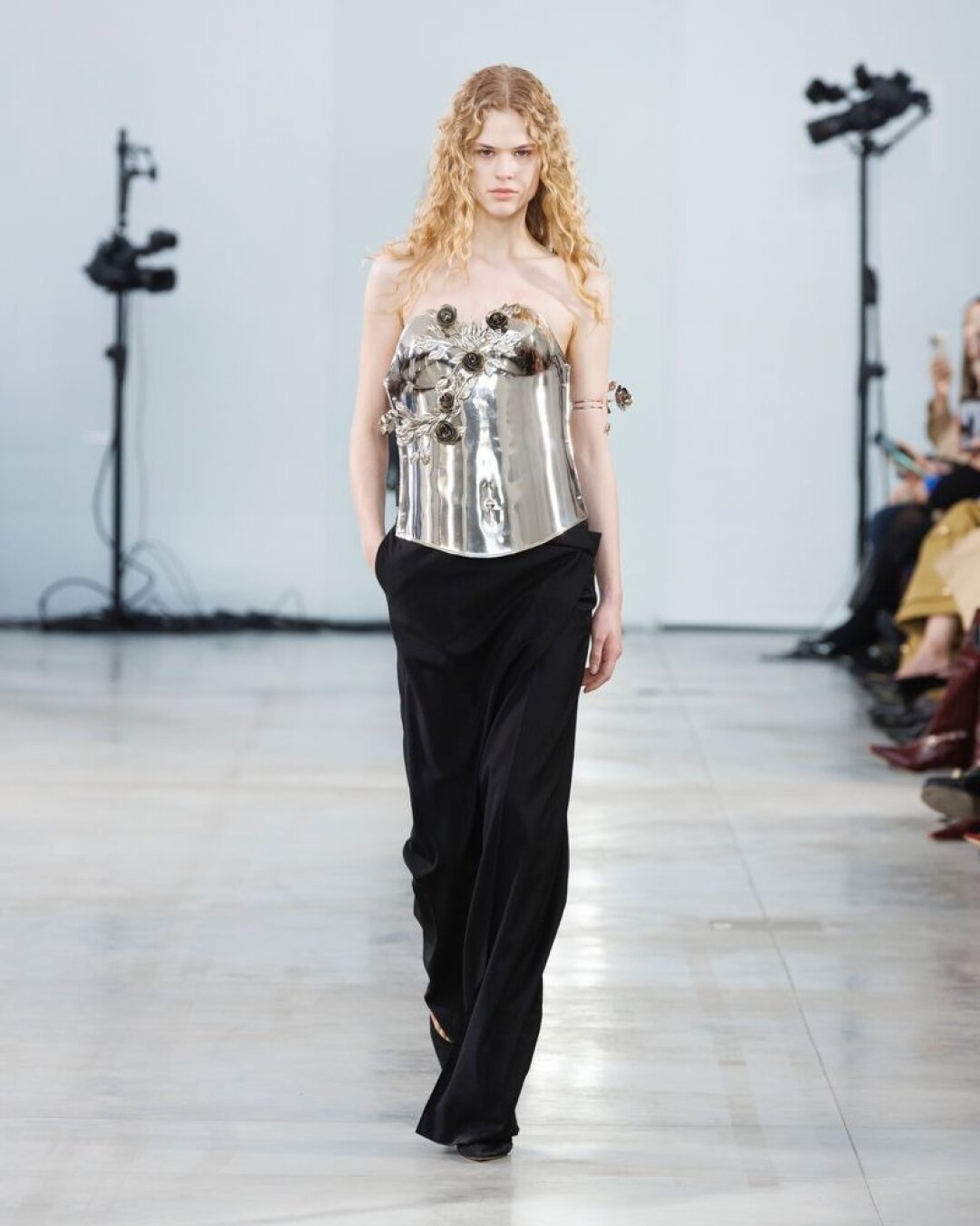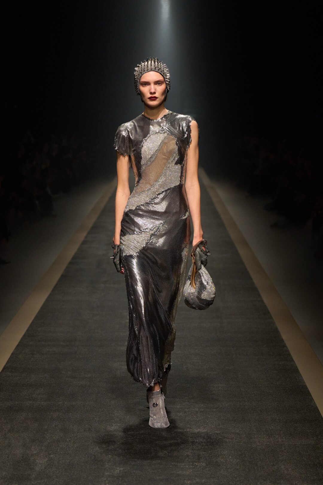 А что на подиуме? Взяв лучшее из архивных коллекций Сары Бертон и Рикардо Тиши (например, Givenchy FW'11), Шон Макгирр в Alexander McQueen приручил металлические текстуры, Giuseppe di Morabito отлили доспехоподобные корсеты, а Люси и Люк Мейер в прощальной коллекции для Jil Sander сочинили из пайеток сверкающую кирасу.