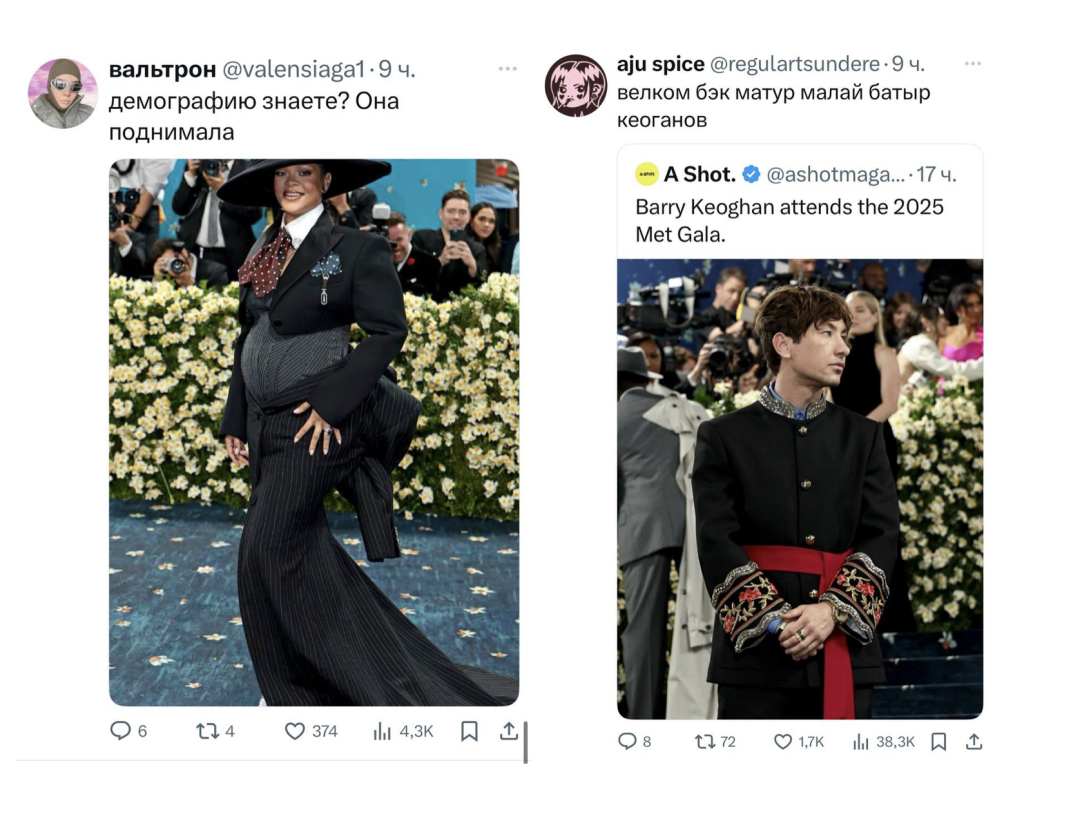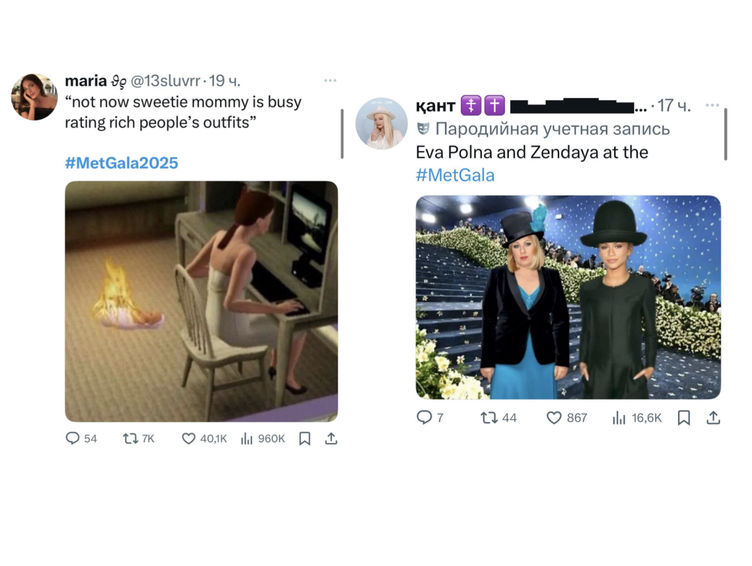 Вам яичницу, конфетку ферреро-роше или шинуазри-комод? Вот они, главные мем-герои Met Gala 2025! Пока Ким Кардашьян входила в образ бомбардиро-крокодило, Чаппелл Рон раскрыла субличность видавшей виды куклы Барби (прошла Афганскую войну!), а Charli XCX накаркала с красной дорожки появление Джессики Кейлл, которая явно перепутала дресс-код 2024 и 2025 балов!