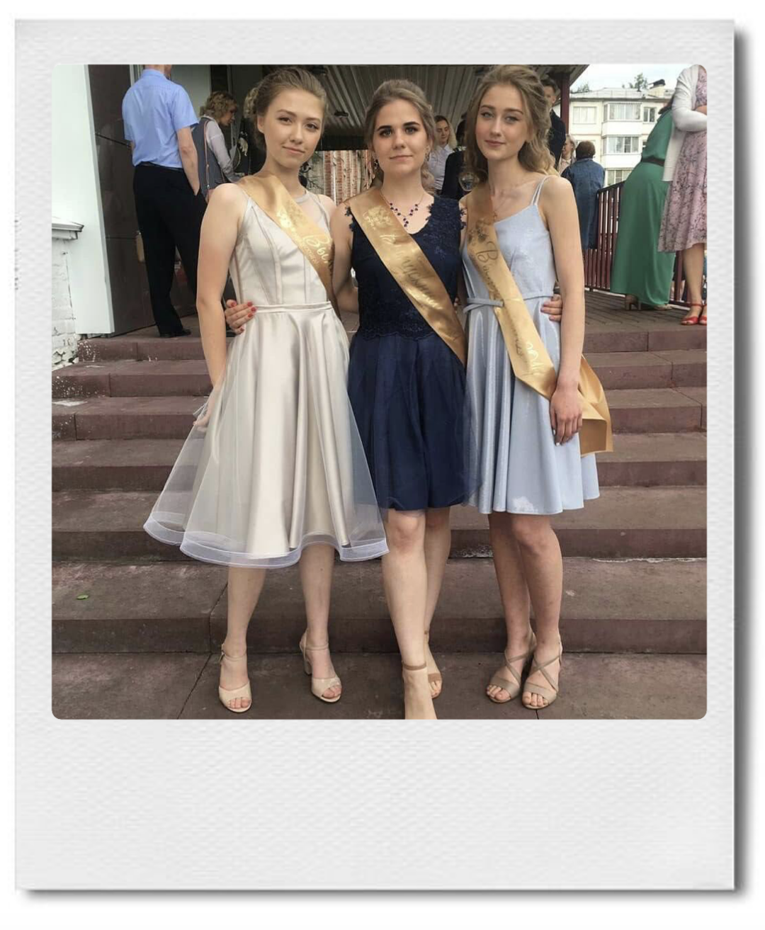 Где мой наряд сейчас, не знаю. Дома, где я жила в 11 классе, уже нет. В родном городе не была уже лет 5, наверное, вещей своих давно не видела. Момент упущен, платье останется только в моем воспоминании.