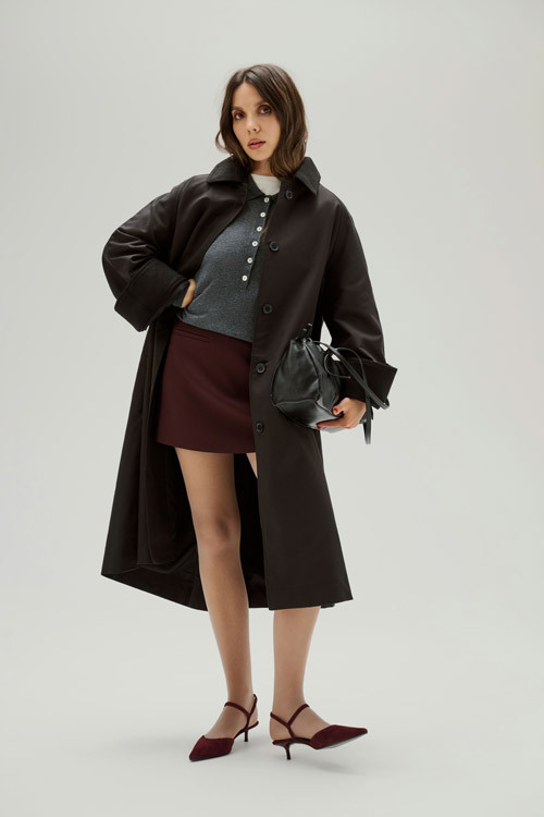 На Валерии: тренч из хлопка, юбка-шорты, трикотажное поло и туфли из натуральной замши MAAG.