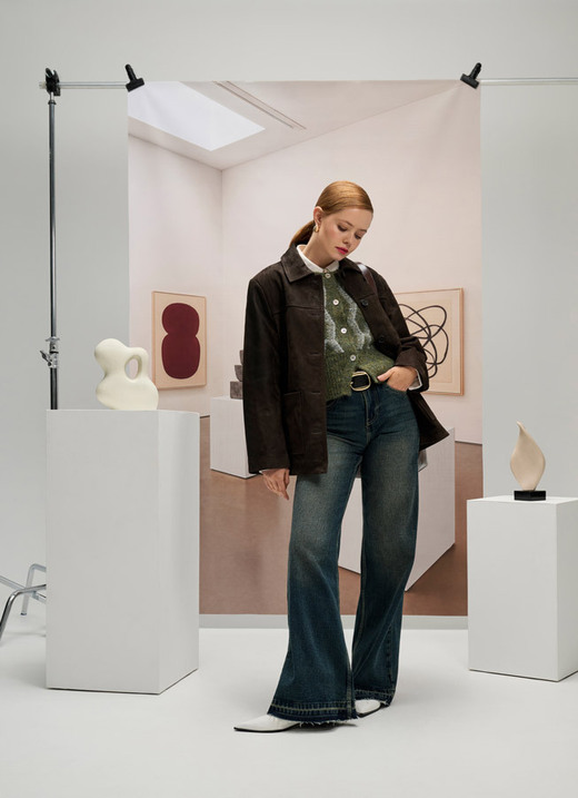 Когда за окном серо, яркие краски можно найти в работах художников. Уютный и стильный образ из блузы, жилета (осенней многослойности — да!) и замшевой куртки идеально подойдет для похода на вернисаж.