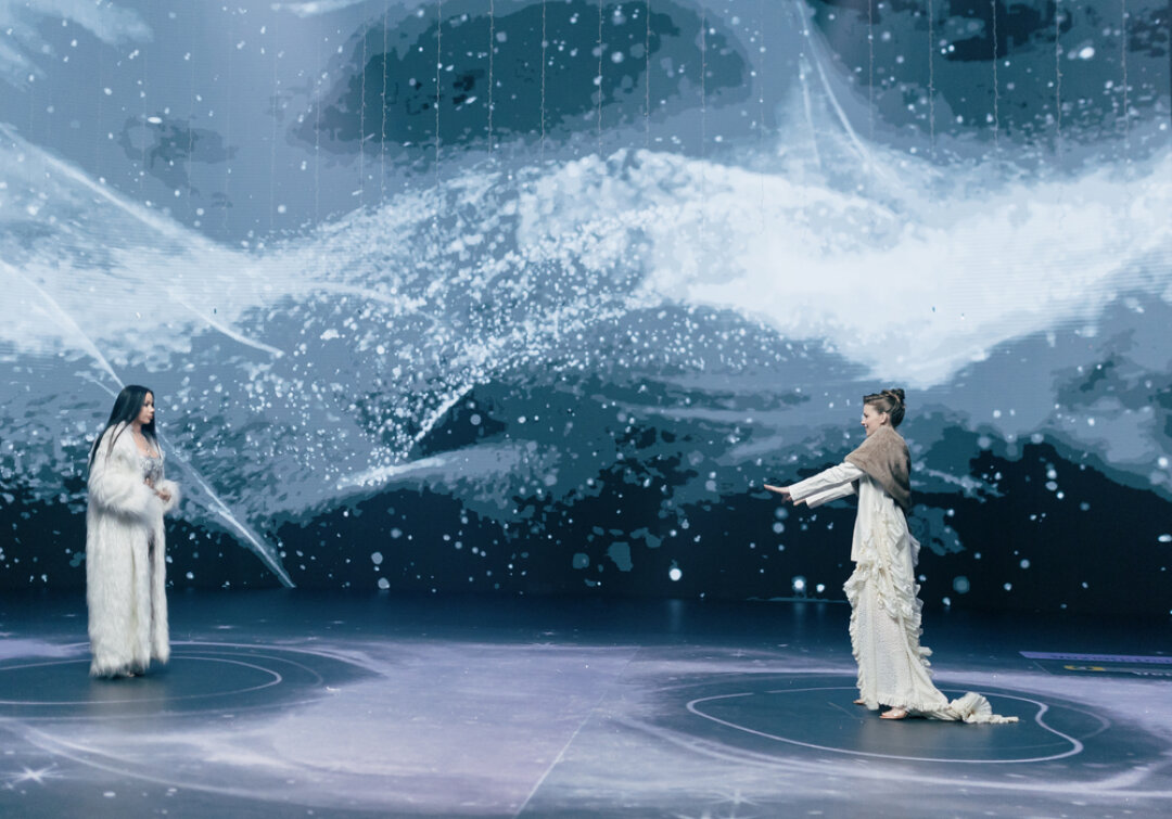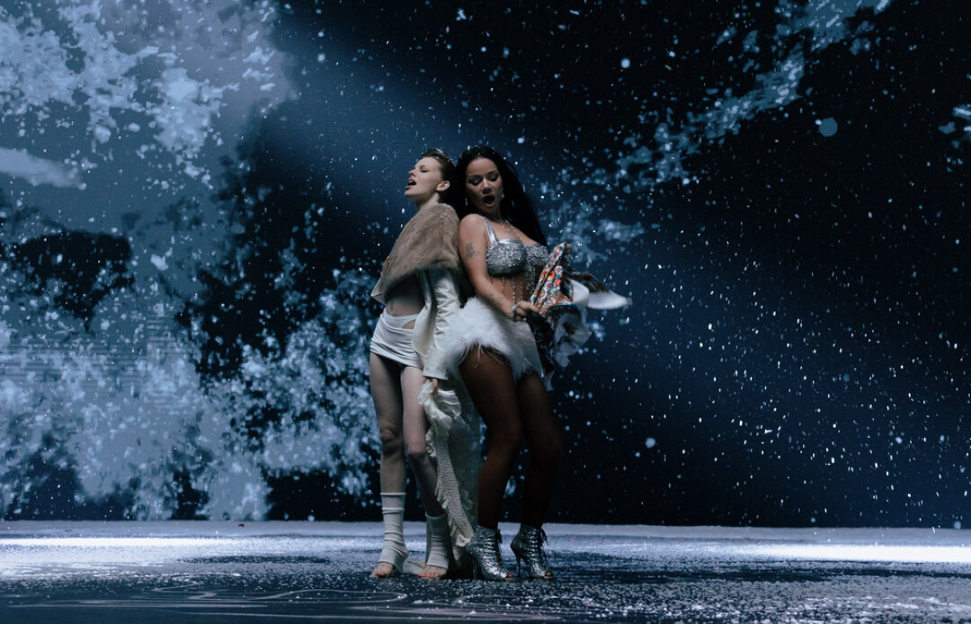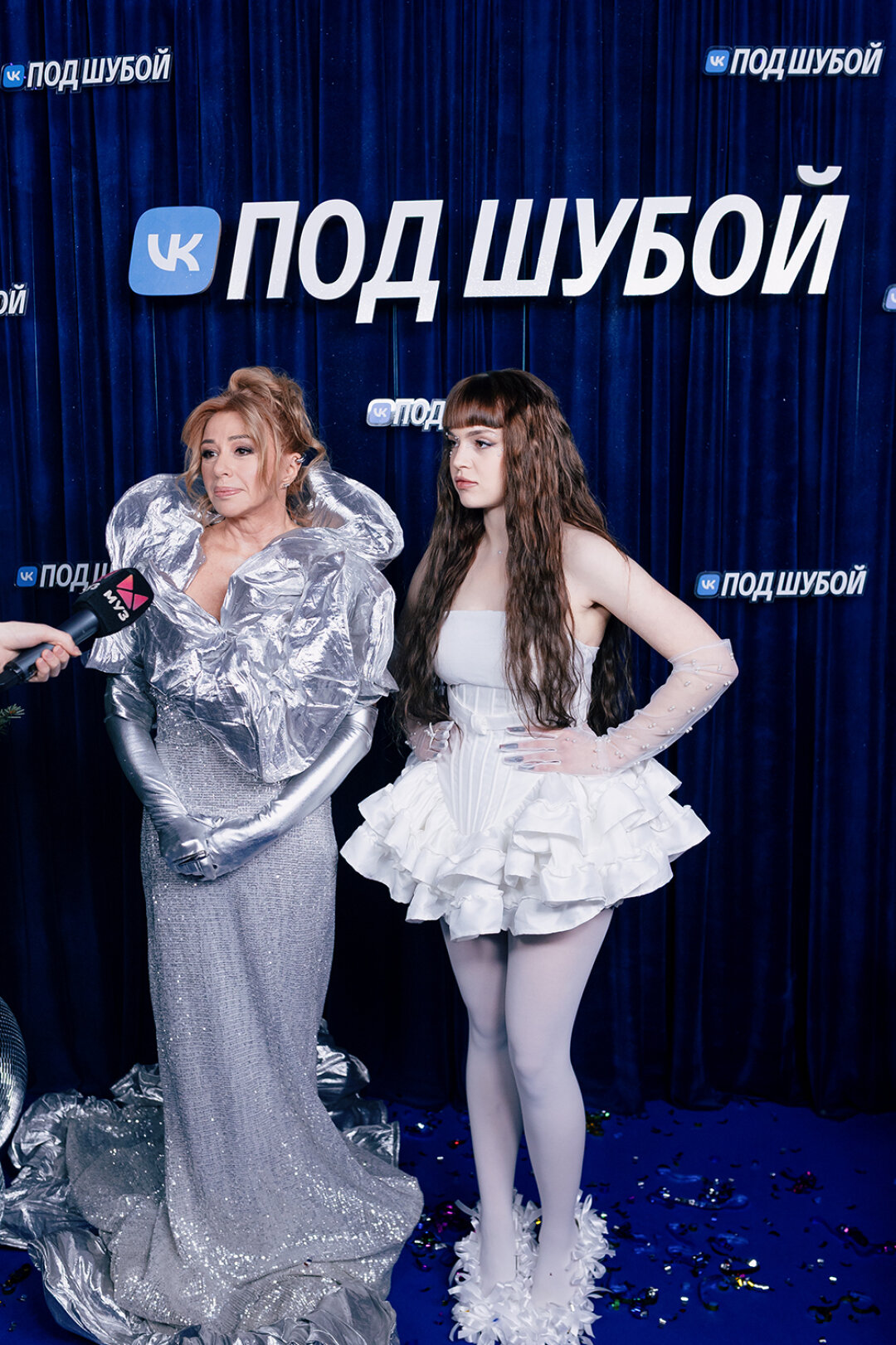 Дуэт Алены Апиной и Baby Cute для «VK ПОД ШУБОЙ 4» — это нестандартное прочтение песни «Гудбай, мой мальчик» в масштабных арт-декорациях, создающих настроение зимней сказки. Внешне звезды резонирует друг с другом — платья, но разной длины и фасона, и фактурные перчатки до локтя, которые придают образам завершенности и выступают трендовым акцентом.