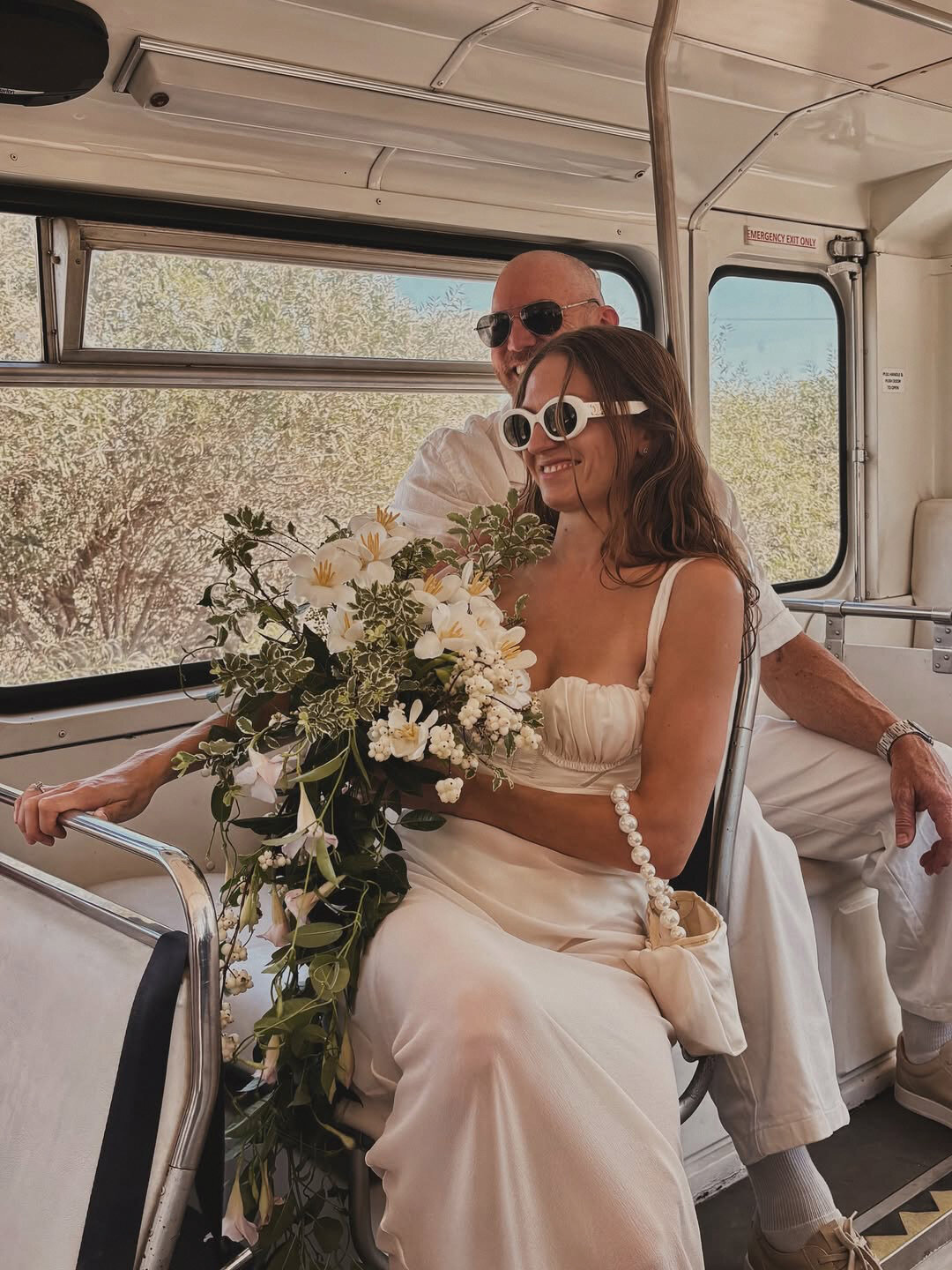 Лучшая выездная свадьба — чилловый рейв на море! Так считает автор главных петербургских сумок Imakebags Ксения Лапшова, устроившая мощный брайдал-движ в Айя-Напе на Кипре — с праздничным автобусом (кидала букет со второго этажа!), катанием на родео-быке и диско-дэнсом у бассейна с грилем и пивом. В паузу между хот-догом и клубным сетом шотов примерила сразу два подвенечных образа — мермейдкорное платье с лифом-ракушками от виртуозов полупрозрачных тканей и драпировок Neegoosh, а также кружевные клеши BITTE_RUHE (пляжный бохо-шик!), дополненные кастомным ридикюлем Imakebags.
