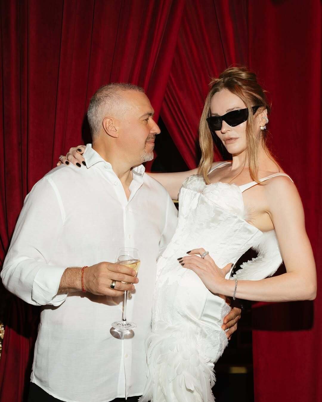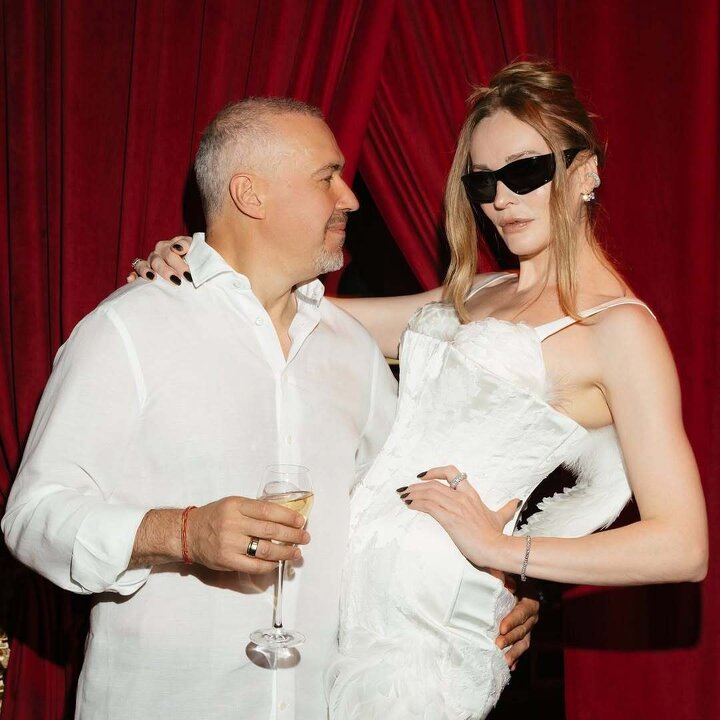 Фэшн + велнес-инфлюенсер Наталья Давыдова aka Тетя Мотя выдала маккуиновскую базу на семейное празднование фарфоровой (20 лет!) свадьбы с топ-менеджером Иваном Стрешинским — спасибо дизайн-авангардисту Илье Мигмуну, отшившему крылатый white-tie-бодикон. «Влюбилась в работы Ильи, увидев его костюм для Коробочки из моего любимого спектакля “Мертвые души” топового творческого объединения “Озеро” (тети-Мотин фонд “Эволюция” заботливо патронирует московский театр с мегакрутым актерским составом — Марией Смольниковой, Викторией Исаковой, Максимом Виторганом, Светланой Ивановой и Полиной Цыгановой. — Прим. ред.)». Мигмун сочинил свадебное платье из кружева (веддинг-база) и фирменных перьев (оммаж Зигфриду и Одетте) за 10 дней без единой примерки — село безупречно. А стилист Юка Вижгородская дополнила образ лакированными шпильками Alaïa и очками Balenciaga. Празднование 21-й свадьбы Тети Моти и Ивана Стрешинского — уже в to-do-листе на 2026 год (манифестируем торжество в свежеприобретенной петербургской квартире в доме Веге)!
