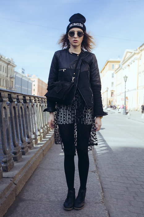 шапка Brian Lichtenberg, куртка Topshop, прозрачную юбку сшила сама, ботинки винтаж