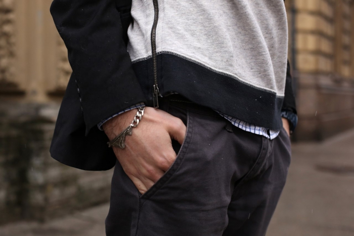 На Гамлете: свитшот Marc Jacobs купил в Малайзии, кеды Converse куплены во Вьетнаме, чиносы Cheap Monday - в Финляндии, рубашка Tommy Hilfiger и браслет с изображением горы Арарат - в Ереване, часы Toy Watch попросил товарища привезти из Италии, кольцо — сувенир с Мальты от сестры, только пиджак H&M куплен в Петербурге.