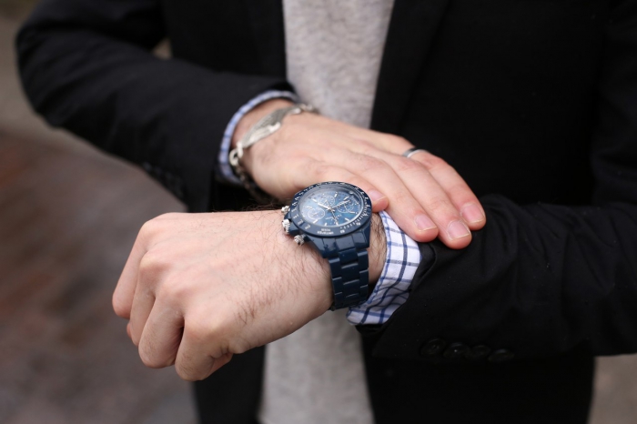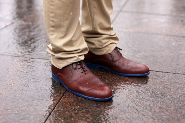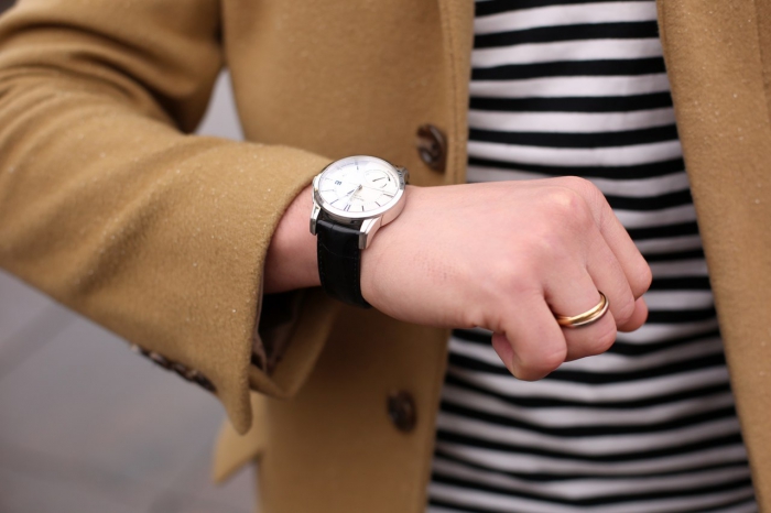 На Жене: пальто J. Crew, туфли куплены в Лос-Анджелесе в магазине Opening Ceremony, брюки Opening Ceremony, часы Maurice Lacroix подарили родители на мои 25 лет.