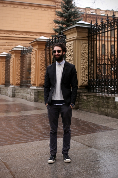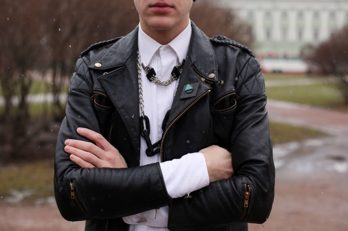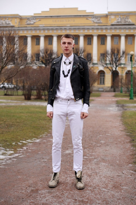Нравится творчество дизайнеров Raf Simons, Patrick Mohr. В Берлине модникам стоит посетить магазин Goo, в Петербурге - концепт-стор «Зубы Христа». Никогда не надену рыцарские латы Ричарда IV, а очень хотелось бы. Источник вдохновения – Москва, причем только если ее рассматривать как курорт, на который приезжаешь отдыхать. Любимый аромат Comme Des Garcons Odeur 53. Мой девиз - настоящий кожан должен стоять на полу, мой стоит! Маст хэв сезона - асимметрия, созданная не самой одеждой, а личным жестом: незастегнутая пуговица по середине, подвернутая с одной стороны шапка, например. Моя слабость - винтажные клипсы: в моей коллекции порядка 20. Последнюю мне подарил друг, который буквально утащил из семейных реликвий бабушки «Стиляги».