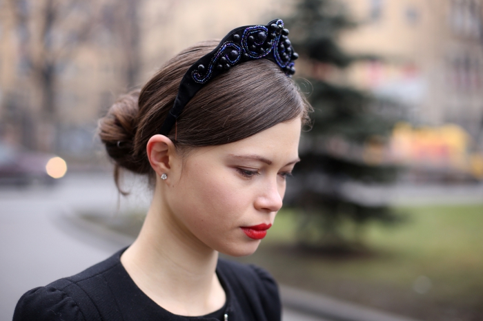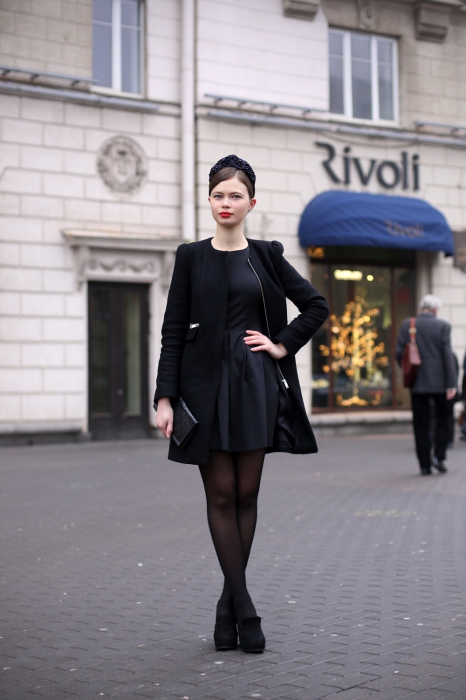 На Ксении: пальто Zara, платье Miss Selfridge, кокошник Verba Accessories, винтажный клатч куплен в зарубежной поездке, ботильоны Marc Ellis.