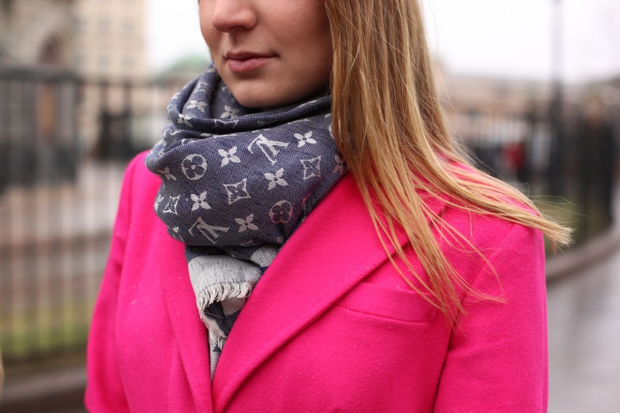 На Ксении: платье Kenzo куплено в Лос-Анджелесе, пальто Paul Smith — в Париже, ботильоны no name — в Нью Йорке за 20 долларов, шаль Louis Vuitton.