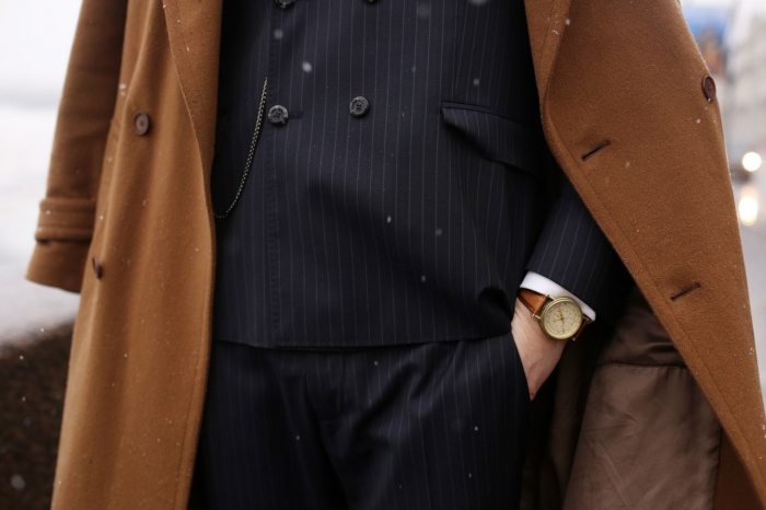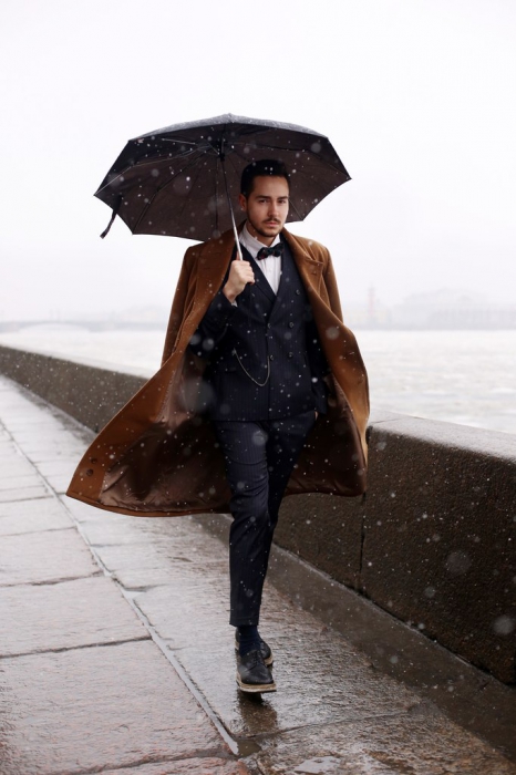На Андрее: пальто Yves Saint Laurent, костюм Zara, рубашка Ermenegildo Zegna, обувь Galary, часы Navy Army, запонки Asos, рюкзак Asos Black.