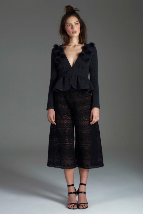 |  | [кто] Про выпускницу «Лаборатории Вячеслава Зайцева» Юлию Калманович пишут журналы CR Fashion Magazine и W Magazine, а на байерском сайте Moda Operandi успешно разлетается уже не первый сезон — международный уровень успешно взят. [что] Бэкграунд в виде театральной семьи читается в подчеркнутой графичности — и фотографичности вещей с принтами, прозрачным кружевом или отделкой из перьев. [сезон] Итак, 1970-е! Кроп-топы, джинса, мохер и люрекс, плюс характерные силуэты: клеш, накидки-пончо и очень, очень приталенные жакеты с помпонами. |