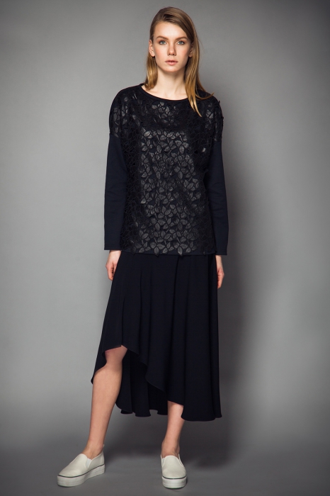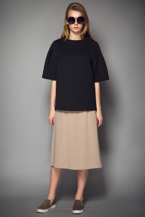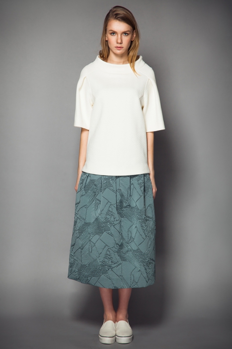 Невский минималист Олег Бирюков — фанат пропорций. Аристократическая длина юбок и платьев ниже колена либо до середины икры, плотные ткани, которые держат объем, максимально естественная цветовая гамма со всполохами изумрудного или сапфирового — наряды, идеальные для знакомства с родителями будущего мужа. |