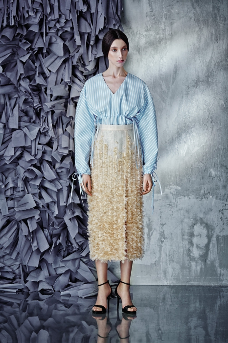 |  | [кто] Пятилетняя работа стилистом в глянце не прошла для Алисы Рубан даром, вместе с сестрой Юлией она стала делать вещи, которых ей не хватало, — идеально комбинирующиеся друг с другом, простые, но при этом максимально эффектные. [что] Рациональный гардероб: качественные ткани, пастельная палитра, аксессуары вроде накладных меховых карманов или вязаных басок, способных сделать любой лук. [сезон] Подолы структурных пальто, асимметричных пиджаков и русалочьих юбок расшиты лепестками органзы, которые придают дополнительный объем и колышутся при движении. |