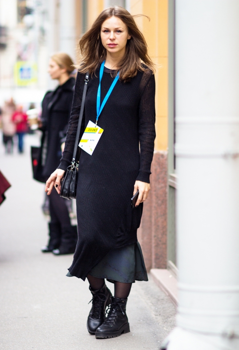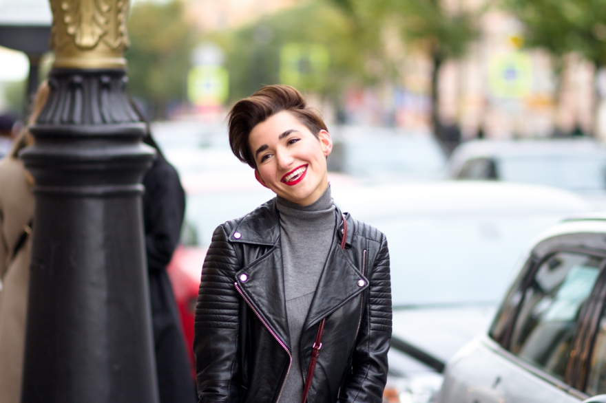На Соне: платье JNBY, косуха Zara, сумка DKNY, ботинки no name, помада MAC