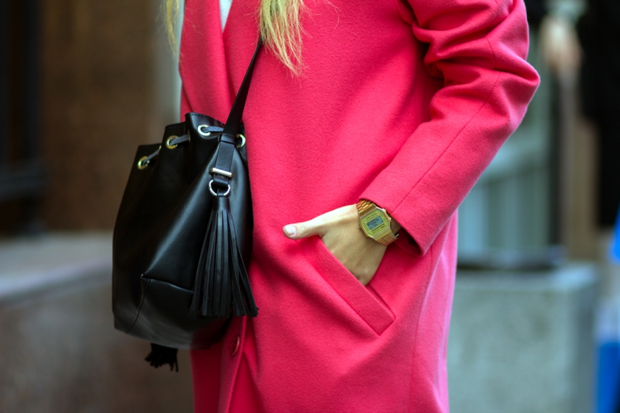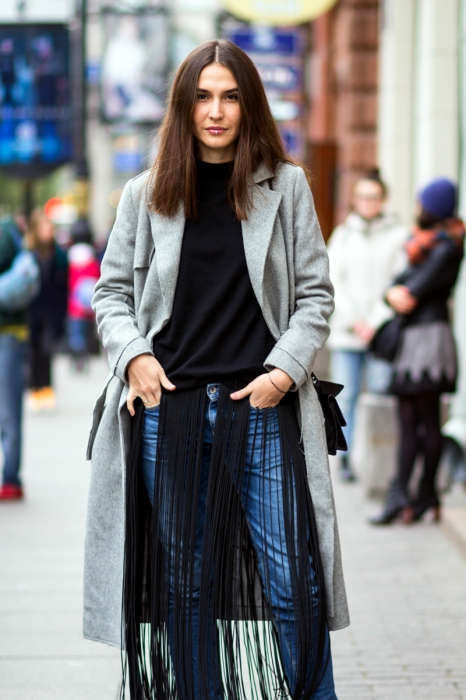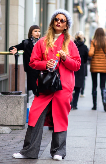 На Роксане: пальто CONCEPT Reserved, свитшот H&M, джинсы Guess, ботинки AGL, сумка Kenzo