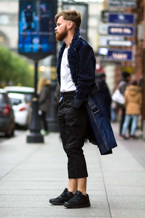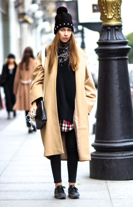 На Саше: шапка 711, пальто So Numbe One, кроссовки New Balance