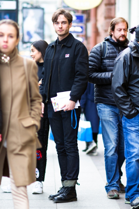 На Диме: джинсы Acne, свитшот Uniqlo, куртка Ben Davis, обувь Solovair