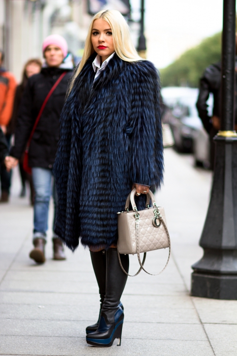 На Марии: шуба Xassa, сумка, сапоги и шорты Dior, рубашка MATH-Studios, куртка Zara, кольцо BCBG Max Azria