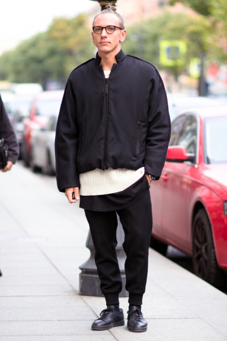 На Александре: очки Saint Laurent Paris, куртка Lanvin, свитер Umit Benan, футболка H&M Long Fit, джоггеры Neil Barret, кеды Santoni