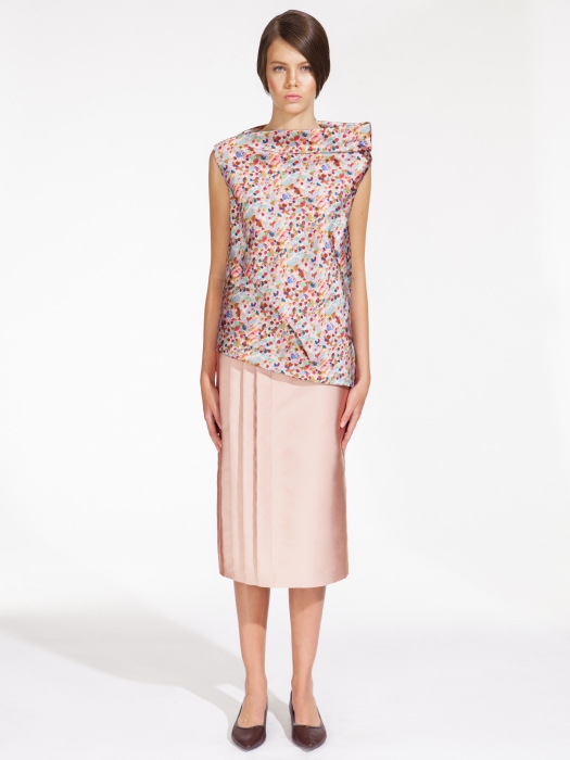 Возвращаясь к теме о возрасте и осмыслении, я посвятил коллекцию маме. Когда мы начали собирать луки, я увидел, что получился образ в стиле 1960-х, который отдаленно напоминает ее гардероб. Сейчас наступило время агрессии, неопределенности, непонятности, и в такой период очень хочется чего-то теплого, надежного, гармоничного. Я держал в голове 1960-е, но думал про 1990-е с их характерной асимметрией.