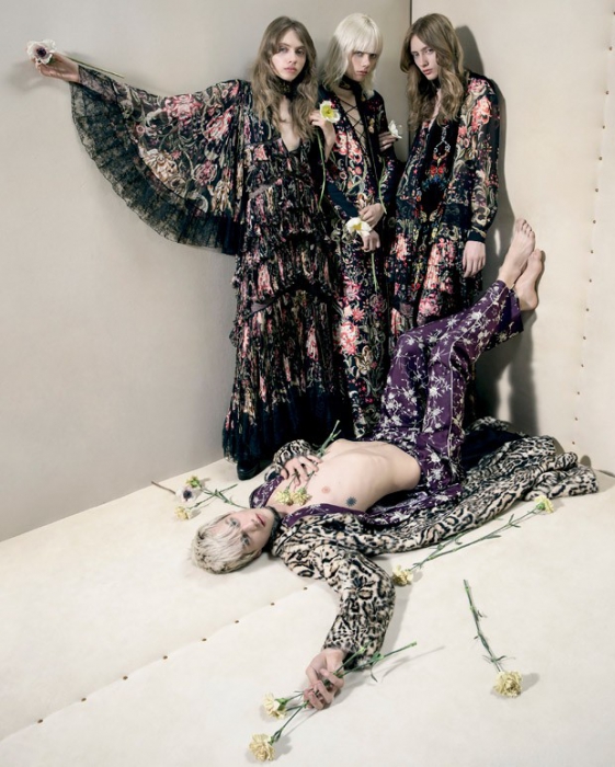 Две недели назад была обнародована рекламная кампания Givenchy, в которой Вика (Odette) Павлова снялась в компании Мариикарлы Босконы, Беллы Хадид и Ирины Шейк. А сегодня бренд Roberto Cavalli показал первые кадры своего осенне-зимнего кампейна, где мы снова видим воспитанницу агентства Tann Model Management — на этот раз с сестрой Юлей. Фотограф — Тим Уокер, а в модельном составе замечены Марьян Йонкман и феминистка Адвоа Абоа.