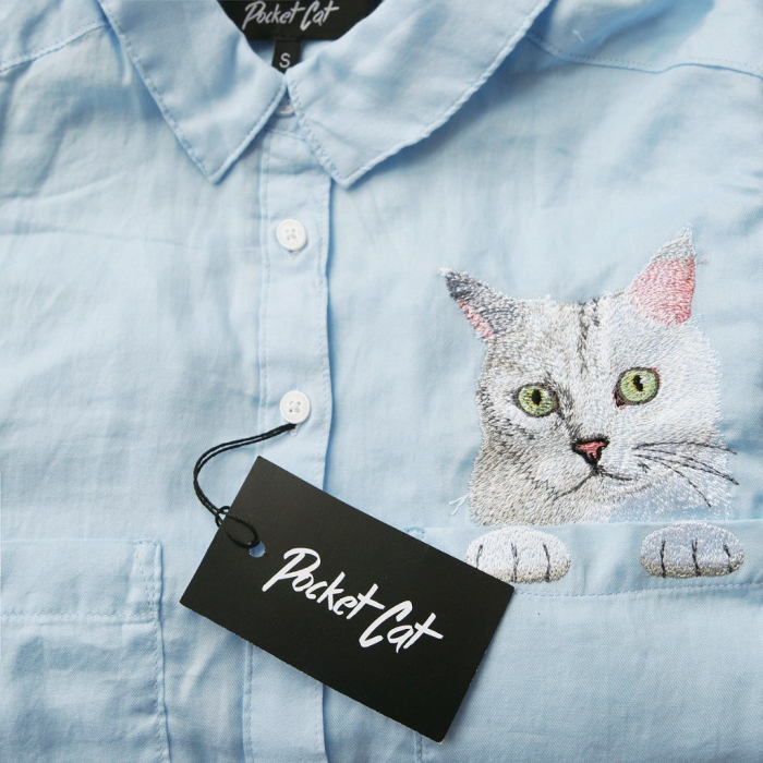 Мы заказали лучшие немецкие нитки, а также добавили металлические, чтобы глаза выглядели максимально живыми. Успех первой партии был таким, что мы закупили вышивальные и швейные машины и открыли цех. Пока делаем только рубашки из стопроцентного хлопка, рюкзаки и кепки, но вот-вот выпустим свитшоты и футболки. Как только мы разработаем эскизы с другими животными, то сменим название на Pocket Cat & Co. Несмотря на то что для рекламы и продвижения мы используем только паблики «Вконтакте», заказы приходят из Норвегии, Штатов и Канады — и конечно, мы хотим отправлять наших котов по всему миру».