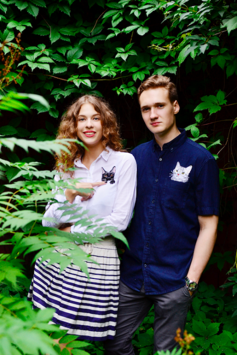 Основатели петербургского бренда Pocket Сat Артем Шлячков и Анна Янишевская предвосхитили тренд на котиков в моде и украсили вышитыми животными рубашки, рюкзаки и кепки.