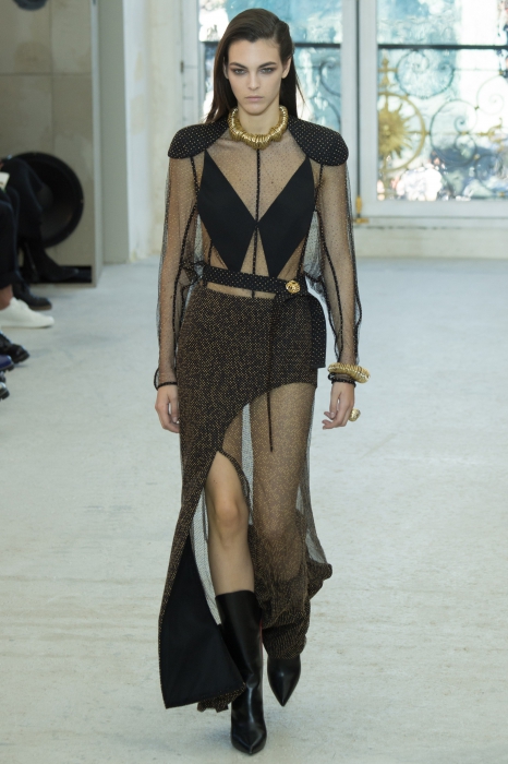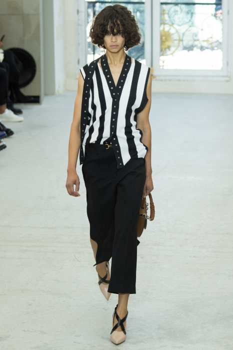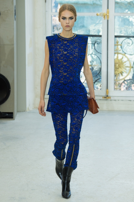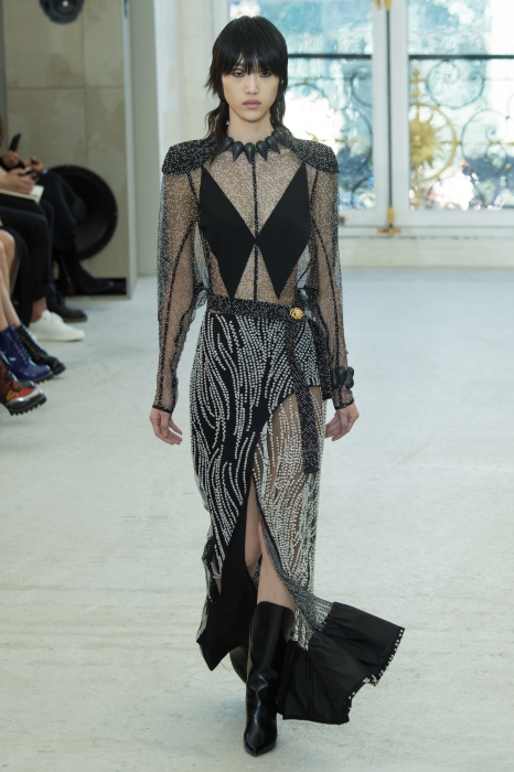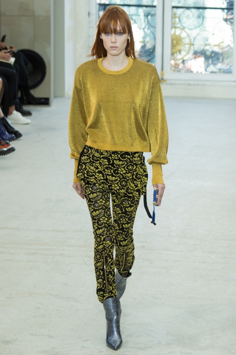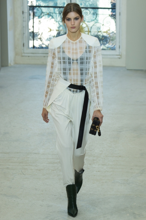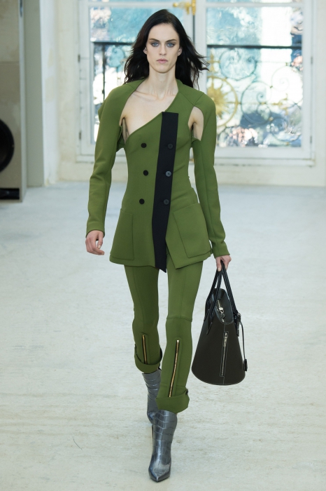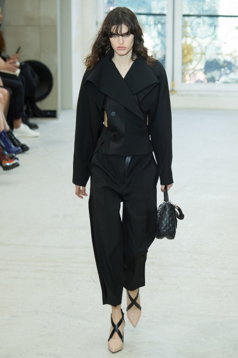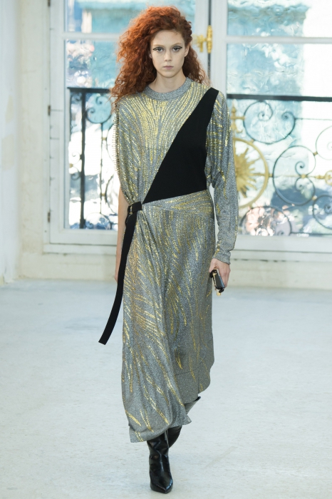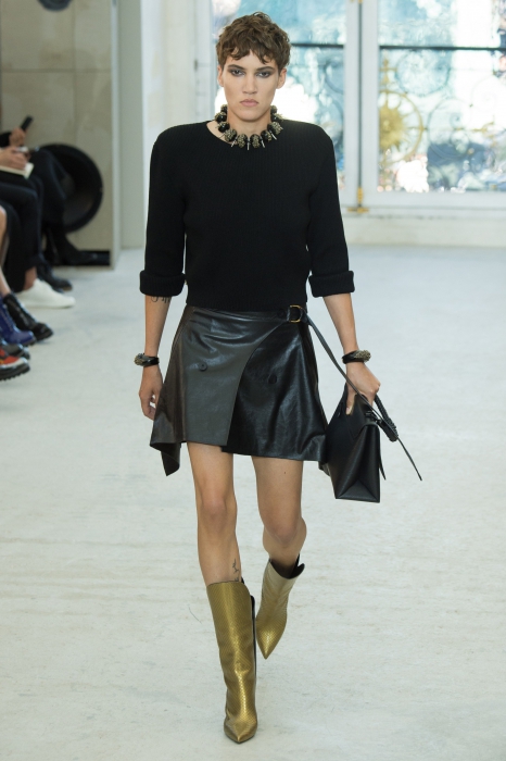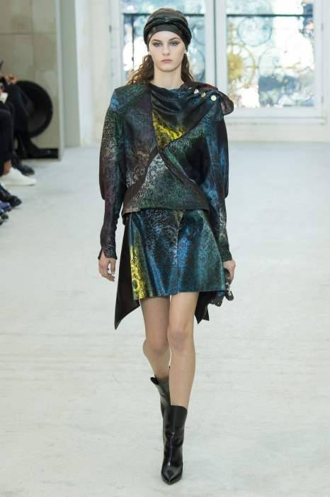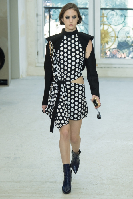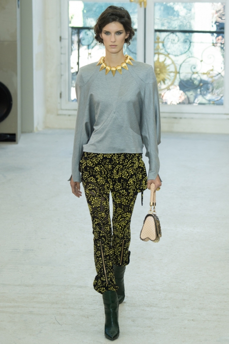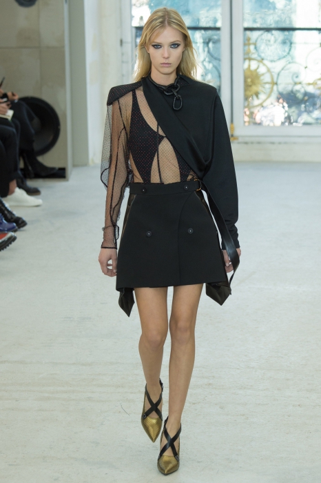 Первая работа Николя Гескьера для Louis Vuitton, которая обращается в прошлое — до этого дизайнер пропагандировал футуризм. В новой коллекции — ассиметричные платья из 1980-х с мягкими драпировками и характерными для той эпохи вырезами, блестящие блузы, присборенные на бедрах брюки и кожаные платья, какие носили наши мамы 30 лет назад.