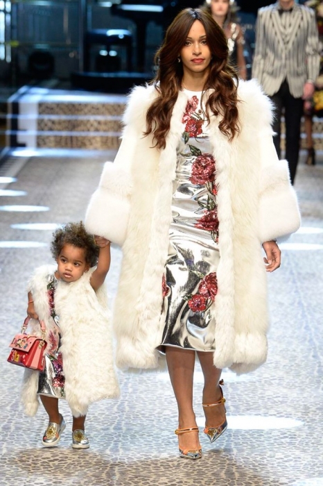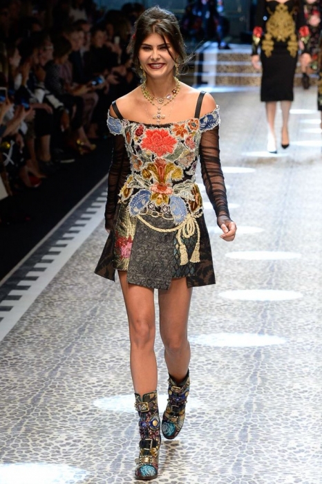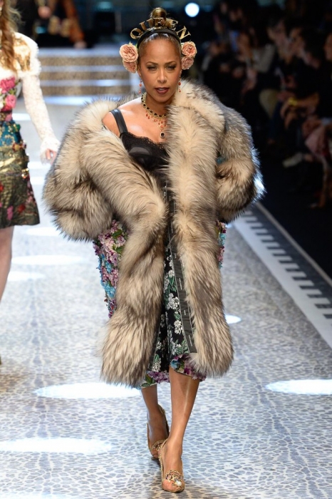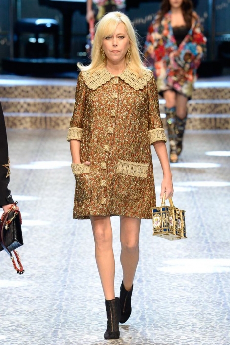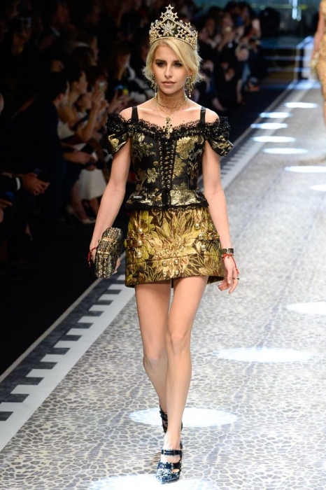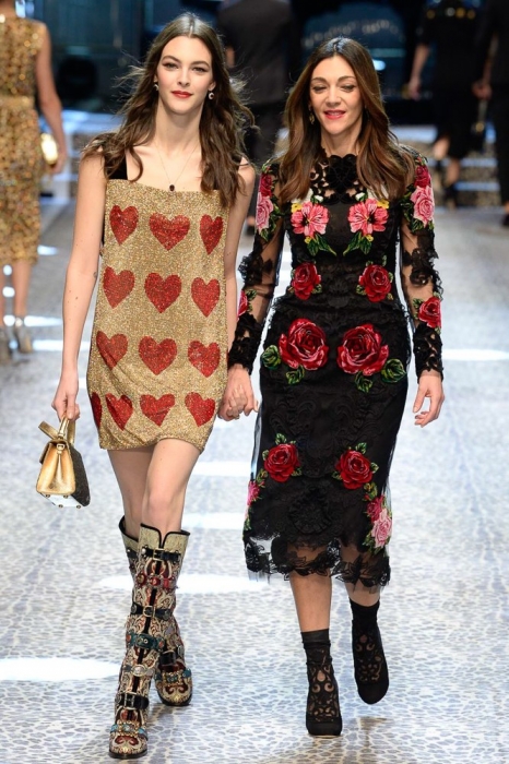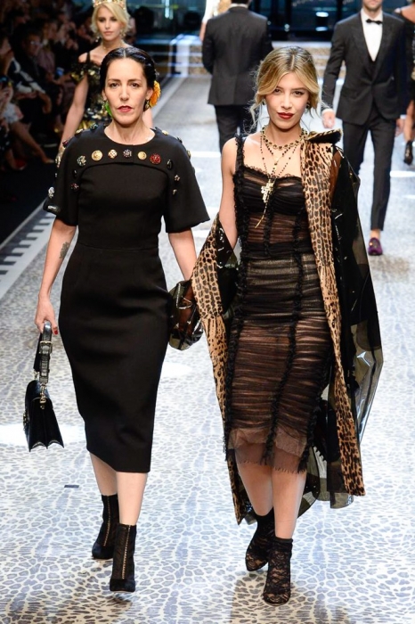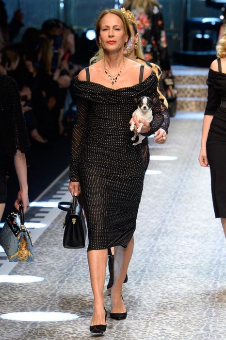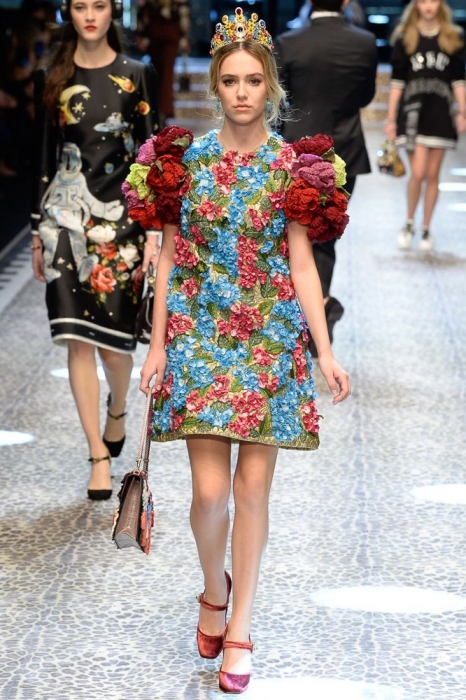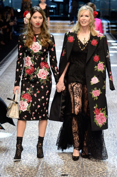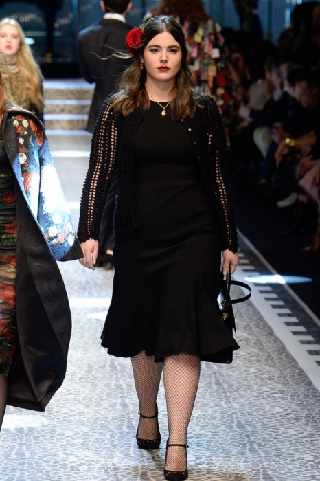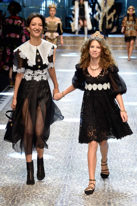 Платье Dolce & Gabbana украшает всех — эту аксиому Доменико Дольче и Стефано Габана и выбрали темой для осенней-зимней коллекции. На подиуме мы увидели супермоделей, клиентов бренда разных возрастов и фигур, блогеров (например, Кристину Базан), целые семейства, певиц (например, Мэдисон БирМодел или Хлои и Вайли Бейли, которых называют протеже Бейонсе) и российских it-girls (Стеллу Аминову с дочерьми, Юлию Визгалину, Илону Столье, Елену Лихач, Надежду Оболенцеву и Викторию Шелягову).