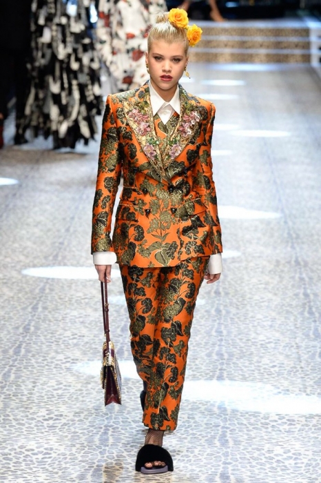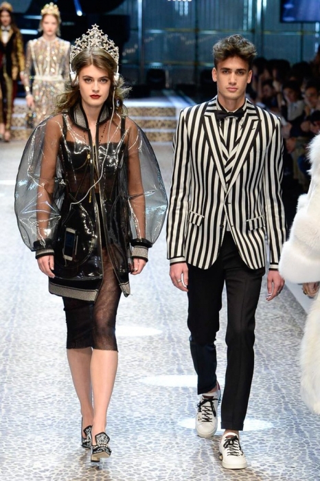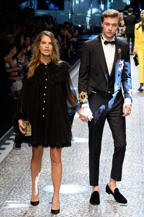 Но большинство ролей в шоу Dolce & Gabbana снова отдали милленилам: показ начался с выступления двадцатилетнего Остина Махоуна, на подиум вышли София Ричи, модели Пайпер, Дейзи и Лаки Блу Смит, начинающая певица Мэдисон Бир и мексиканский блогер Джуанпа Зурита, у которого армия поклонников исчисляестя миллионами. И это еще не всё: журналисты американского Vogue насчитали на шоу бренда около сорока миллениал-моделей, которым пророчат суперпопулярность.