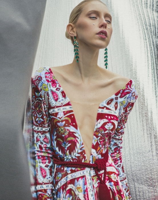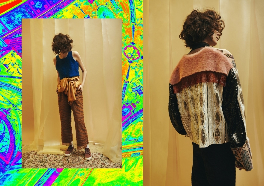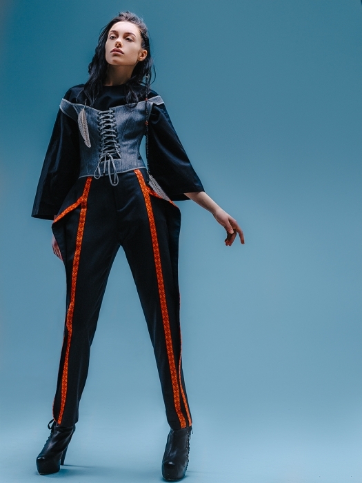 Этнокитч — так можно описать стилистику, в которой работает молодой дизайнер из Петербурга. В его коллекции смешалось всё: личные воспоминания про жизнь в Сибири, эстетика петербургской зимы, стеганая ткань и баска с красной отстрочкой, позаимствованные у экспонатов Этнографического музея, и сложная шнуровка, как у традиционных скандинавских костюмов. Вещи PSSP можно посмотреть в магазине TeploSvetlo на Пушкинской улице.