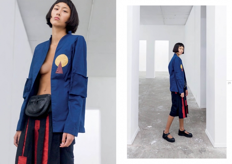 Тбилисский бренд, который придумали Майя Чхартишвили и трехкратная чемпионка мира по мас-рестлингу Валита Горелчаники, работает в направлении супрематизма: комбинирует объемы, геометрические фигуры и контрастные ткани в одном луке. В итоге получается коллекция, которая напомнит нам о советском авангарде и наверняка очарует западных модников — всех тех, кто полгода назад скупал форму российской сборной на Олимпиаде.