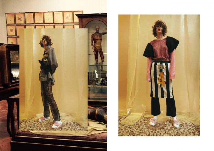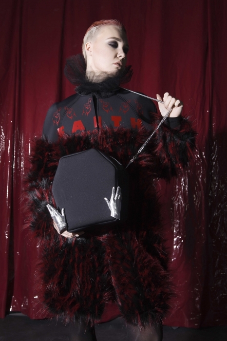 Дизайнер Ёлли Даркович из Минска делают одежду в духе времени: шубы из искусственного меха, вещи и лозунгами, платья-коконы и топы с ироничными аппликациями. Хотя фрагменты коллекции отсылают нас то к Marni, то к MSGM, то к Vetements, в вещах чувствуется самобытная мысль и желание расти. А в этом случае к великим обращаться не стыдно.