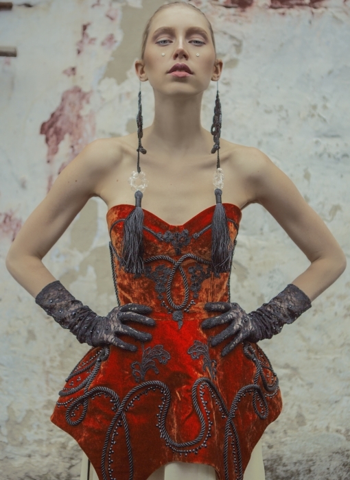 Максимум комплиментов от нашего экспертного совета досталось Алисе Гагариной. А Татьяна Парфенова даже пригласила молодого дизайнера на к себе стажировку. И мы не удивляемся: Алиса делает впечатляющей сложности кутюрные платья и накидки из позолоченных перьев, которые больше напоминают арт-объекты.
