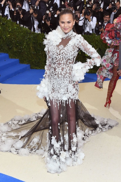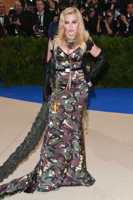 Не к месту было и платье Maison Margiela на Кэти Перри, которое стало шоустоппером вечера. Наряд Джона Гальяно сопровождал необычный головной убор, — два зеркала по бокам и вышитая на лбу надпись «Witness» («свидетель») — который бы больше подошел к тематике прошлогоднего Met Gala («Мода в век технологий»). Наряд Marchesa на Крисси Тейген был, конечно, прекрасен, но антифотогеничен: на снимках платье походило на тюль с клочками ваты, имитирующими снег. А победителем в номинации worst-dressed вечера стала Мадонна. Про ее камуфляж Moschino пошутили: «Как услышите песню группы «Любэ» — знайте, Мадонна приехала».