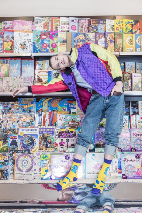 «За такие носки в Калуге и... (сильно побить) могут!» — эта фраза, брошенная парнем на летнем музыкальном фестивале, исчерпывающе описывает рынок дизайнерских носков в России. Но чем интенсивнее мы наступаем, тем больше людей нас поддерживают. Это как заряд шикарного настроения, ведь наши носки — для оптимистов! Страсть к яркому мне привили рейвы. Танцы по десять часов, шубы вырвиглаз, брюки клеш, платформы по пятнадцать сантиметров. Помню, как в 2001 году я избавлялся от этого немыслимого гардероба — пришло осознание: что-то здесь не так, не пора ли найти пиджак и галстук? Слава богам, тогда не было «Инстаграма» и светской хроники и никто никогда не увидит этих луков. Но это было лихое, свободное время. Думаю, что меня так и не избили на улице только из-за моих габаритов. Ну, может, еще из-за пары титулов по боксу. Галстуки, кстати, я так и не ношу.