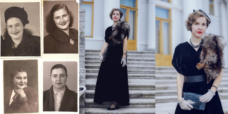 На фотографии моя бабушка, Кинзбурская Лилия Серафимовна, снимок сделан в мае 1946 года, на школьном выпускном. Ей тут 18 лет, а сейчас — 89 лет. Лилия Серафимовна — Ветеран труда, имеет медаль как труженик тыла. Этой фотографией я вдохновлялась при выборе образа для показа мод 1945 в Санкт-Петербурге. Очень благодарна организаторам за возможность ощутить связь поколений.