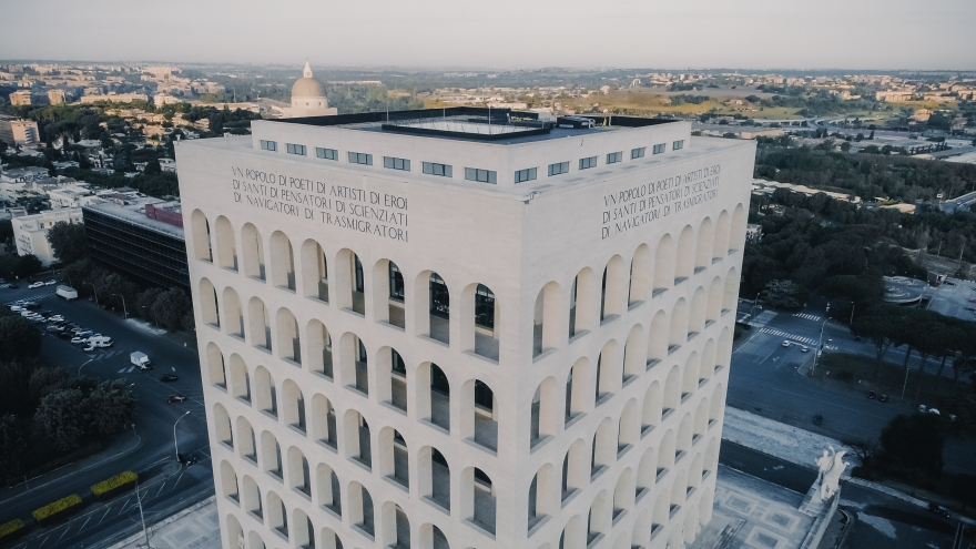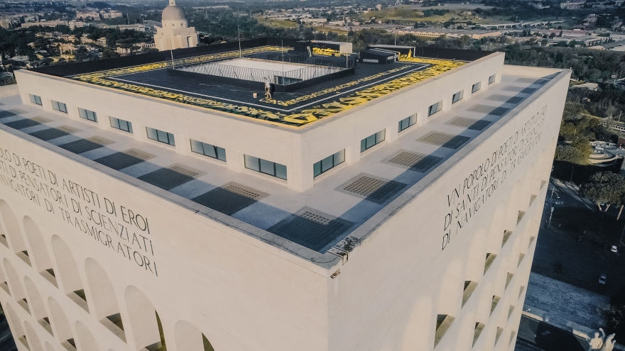 «Эта крыша — легендарный «Colosseo Quadrato» — «Дворец итальянской цивилизации» или «Квадратный Колизей», являющийся монументальным памятником архитектуры и штаб-квартирой модного дома Fendi. Самое высокое здание Рима, построенное полностью из мрамора! И мрамор было расписывать нельзя....